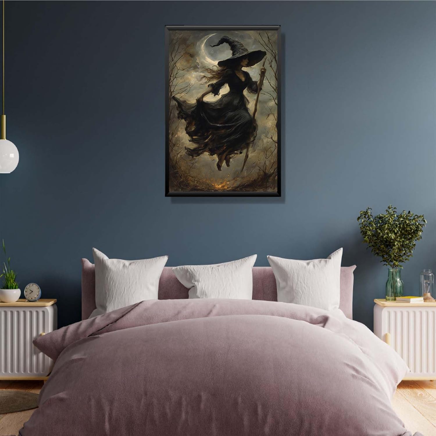 JFHCQJPK Witch in the Forest Halloween Print Wall Art Poster Witch Decor Vintage Print Dark College Wall Art Victorian Gothic Room Decor Canvas Wall Print16x24in Metal blackFramed