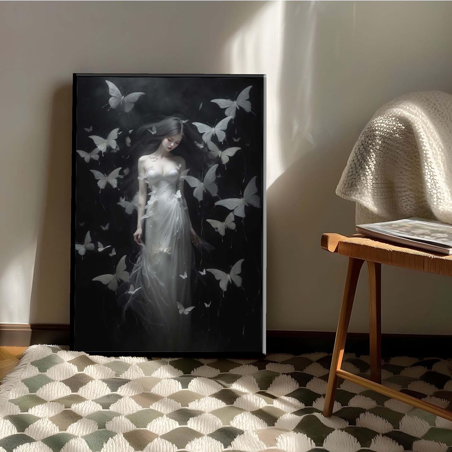 JFHCQJPK Vintage Gothic Feminine Canvas Wall Art Print Butterfly Poster Moody Female Wall Art Retro Artwork Dark College Decor for Home Bedroom8x12in Metal blackFramed