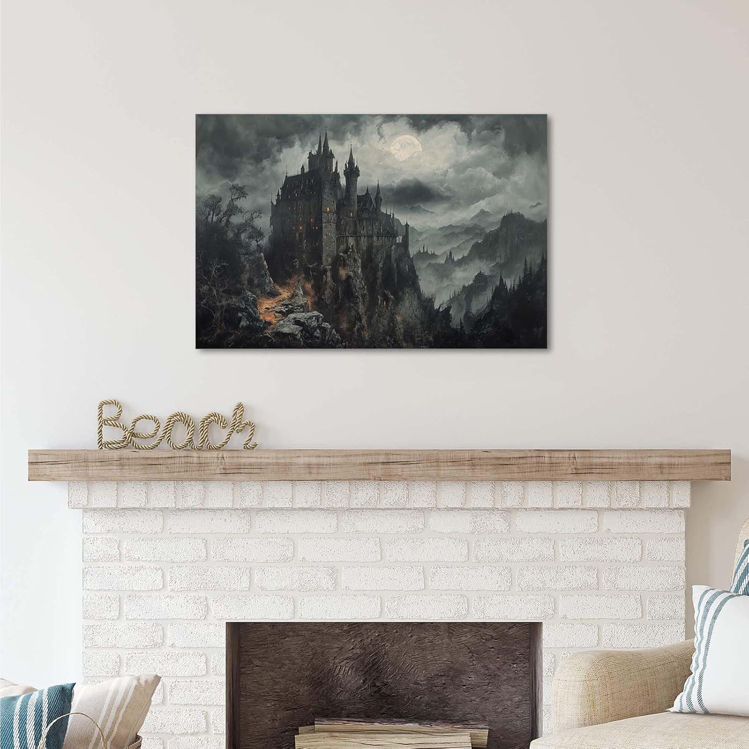Vintage Castle Poster Dark Academy Victorian Gothic Castle Wall Art Poster Moody Mystical Art Print Suitable for Home Living Room Bedroom20x30in Wood Framed