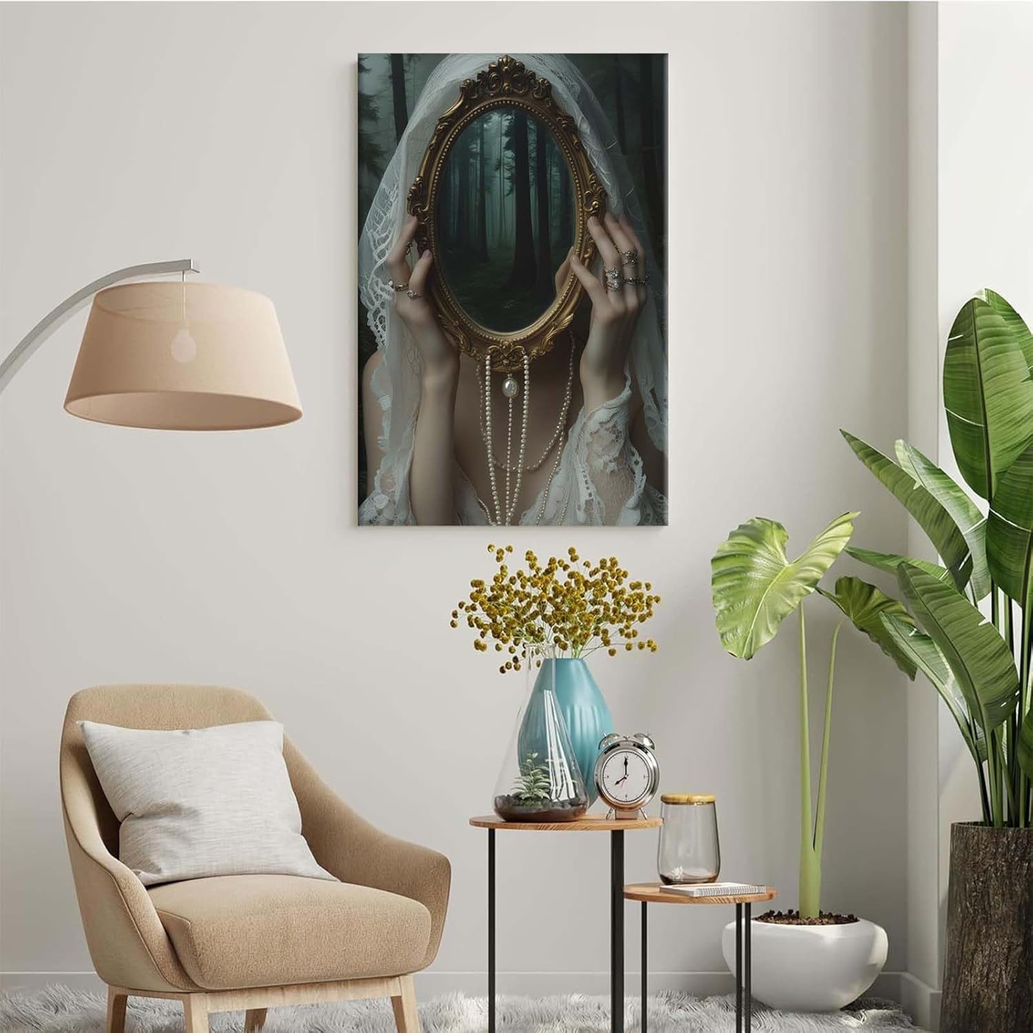 Mirror face covering dark art poster print melancholy gothic painting vintage feminine print victorian style decoration antique art12x16in Frameless