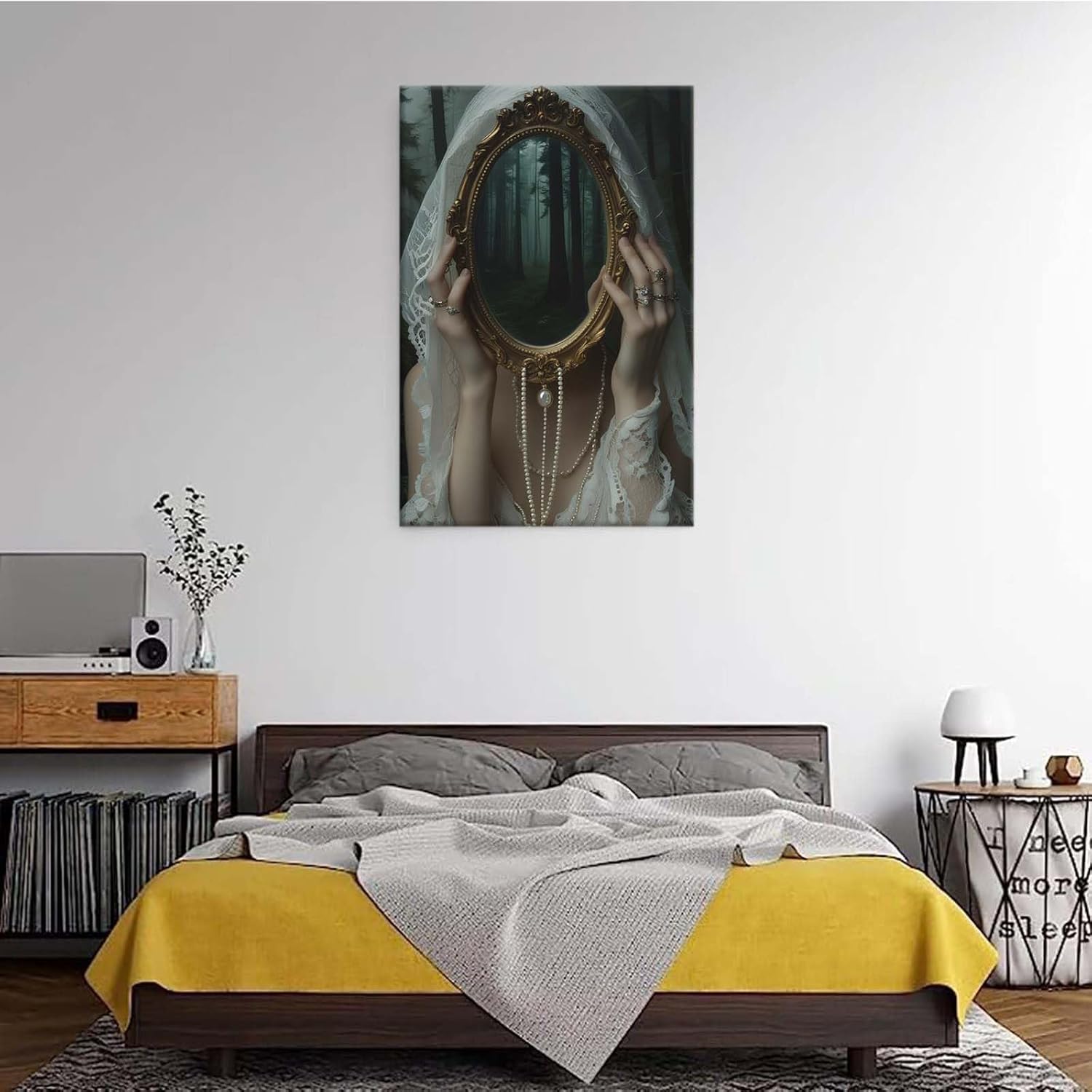 Mirror face covering dark art poster print melancholy gothic painting vintage feminine print victorian style decoration antique art8x12in Frameless