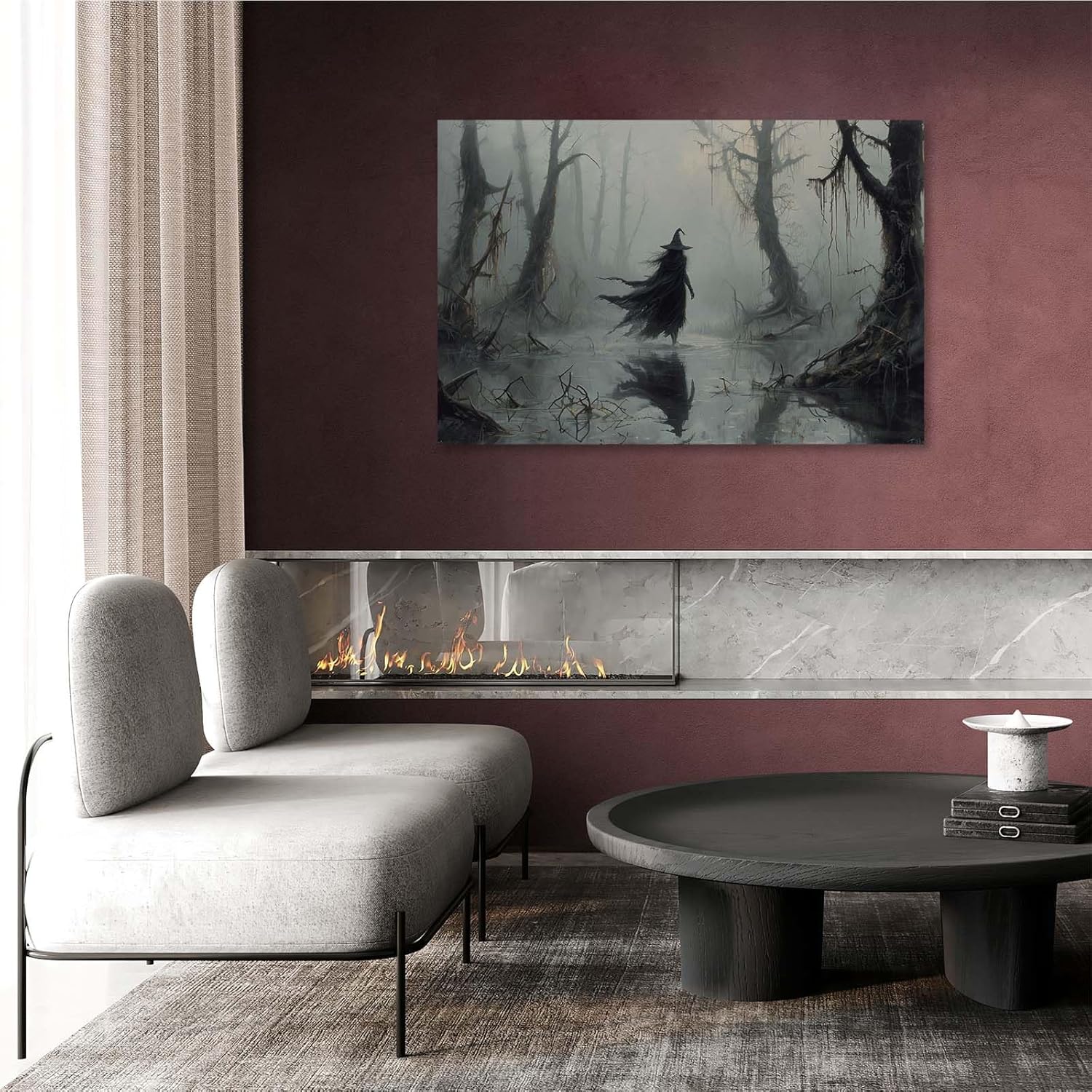 Vintage rustic swamp witch poster dark moody wall art gothic horror season halloween print for home decor retro dark moody painting12x16in Wood Framed