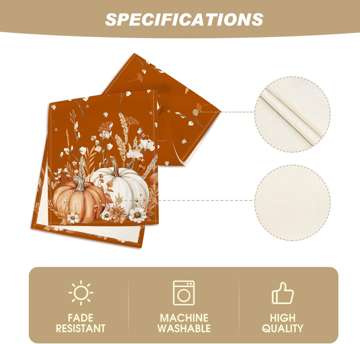 Artoid Mode Orange Pumpkins Leaves Flowers 210 GSM Fall Table Runner, Seasonal Autumn Kitchen Dining Table Decoration for Home Party Decor 13x60 Inch