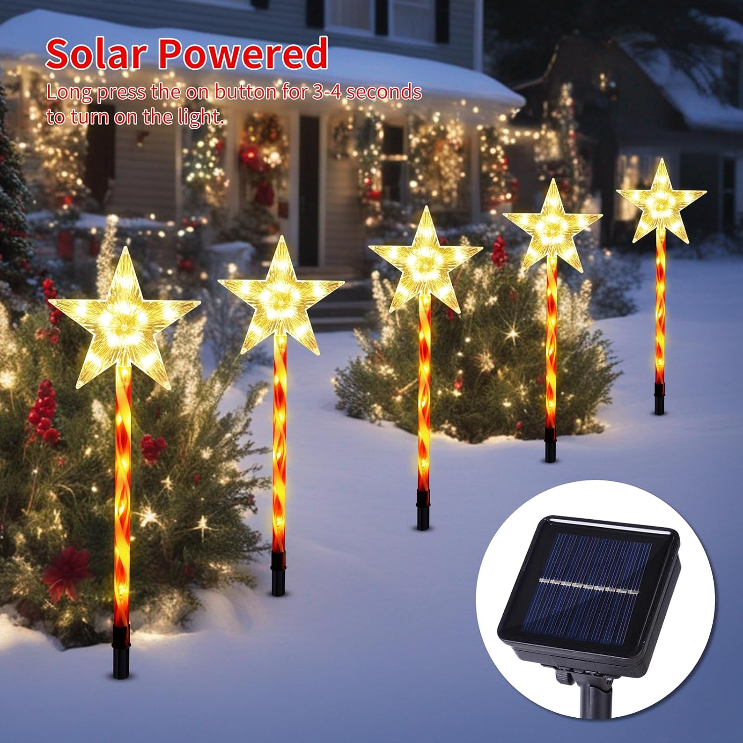 Christmas Solar Pathway Lights Outdoor Decorations, Modes Star Candy Lights Waterproof Led Garden Stake Light for Walkway Yard Lawn Porch Holiday Decor 5-Pack (Red Tube Star, 5 Pack)
