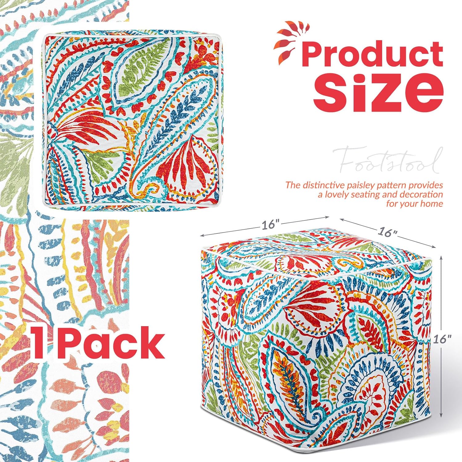 Juexica 1 Pack Ottoman Poufs Indoor Outdoor Inflatable Ottoman Stool Cube Pouffe Square Footstool with Handle for Patio Garden Home Boho Decorative Living Room, Bedroom (16 x 16 x 16 Inches)
