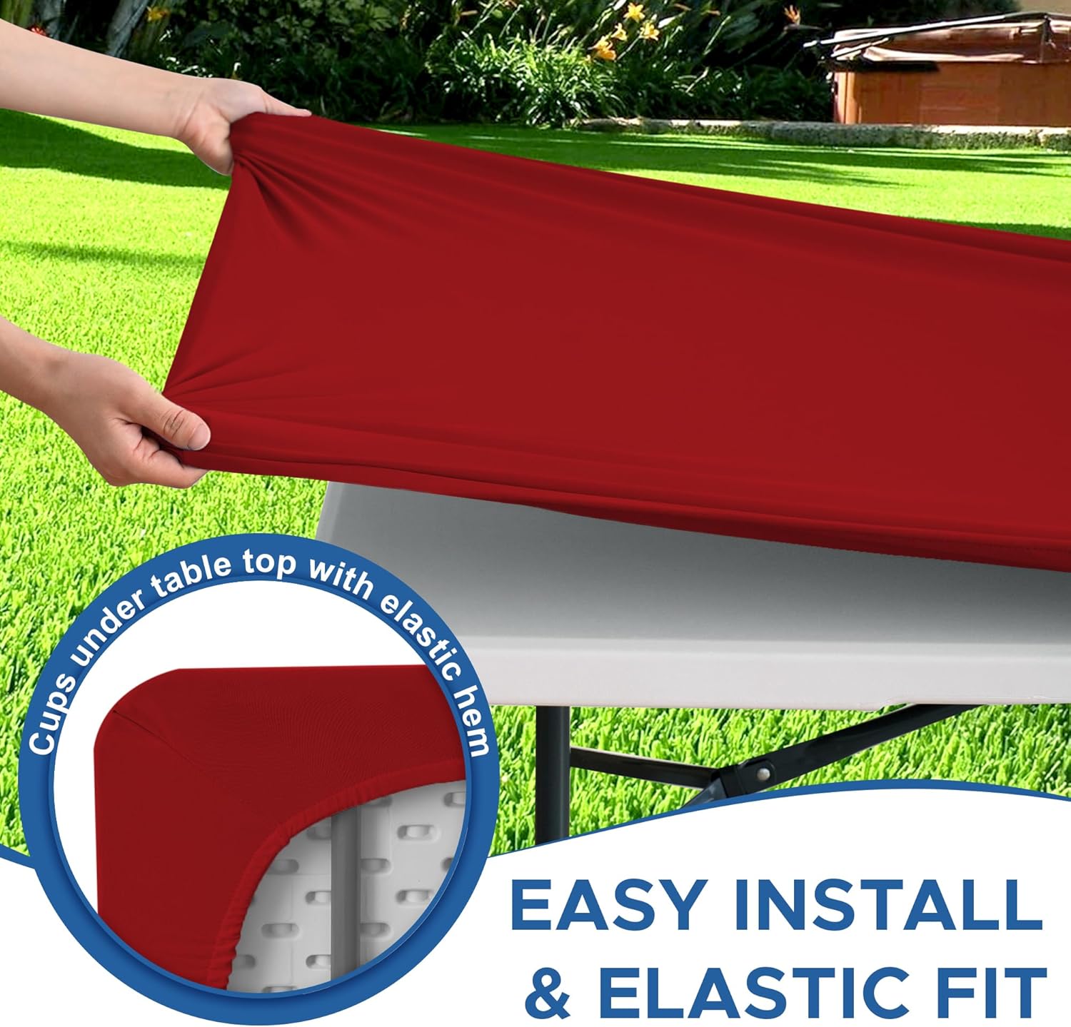 - Easy to put on & Take off: Featuring a four-way stretch and a reusable design, our spandex fitted tablecloths are simple and quick to install. Just slip the tablecloth over the table and adjust the topper, which can easily be done by one person. Additionally, removing it is extremely convenient, saving time and effort.