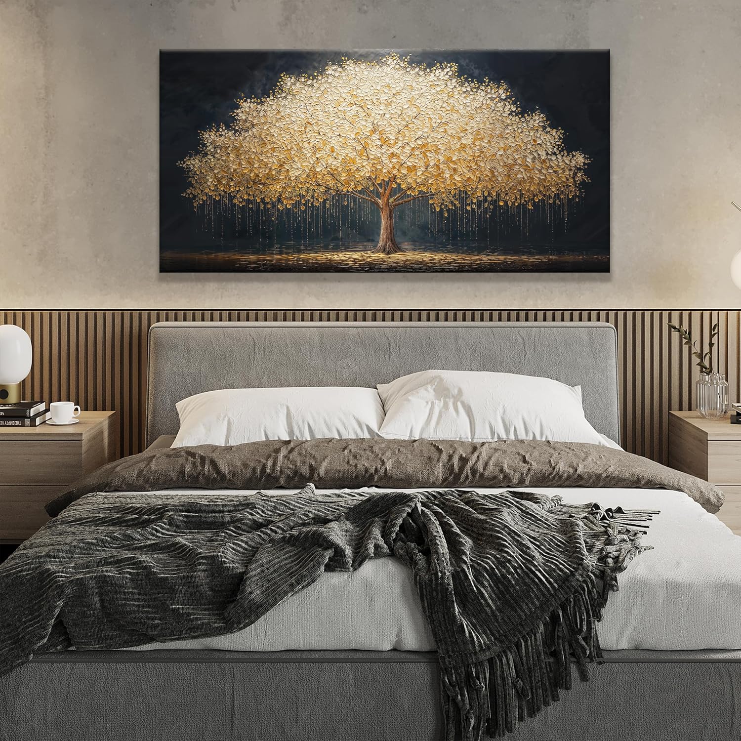 Wall Art Gold Tree Of Life Modern Wall Art Artwork Canvas Art Wall Decor Painting Gold Tree Pictures Abstract Wall Decor For Living Room Bedroom Dining Room Home Office Artwork Ready To Hang 24"X 48"