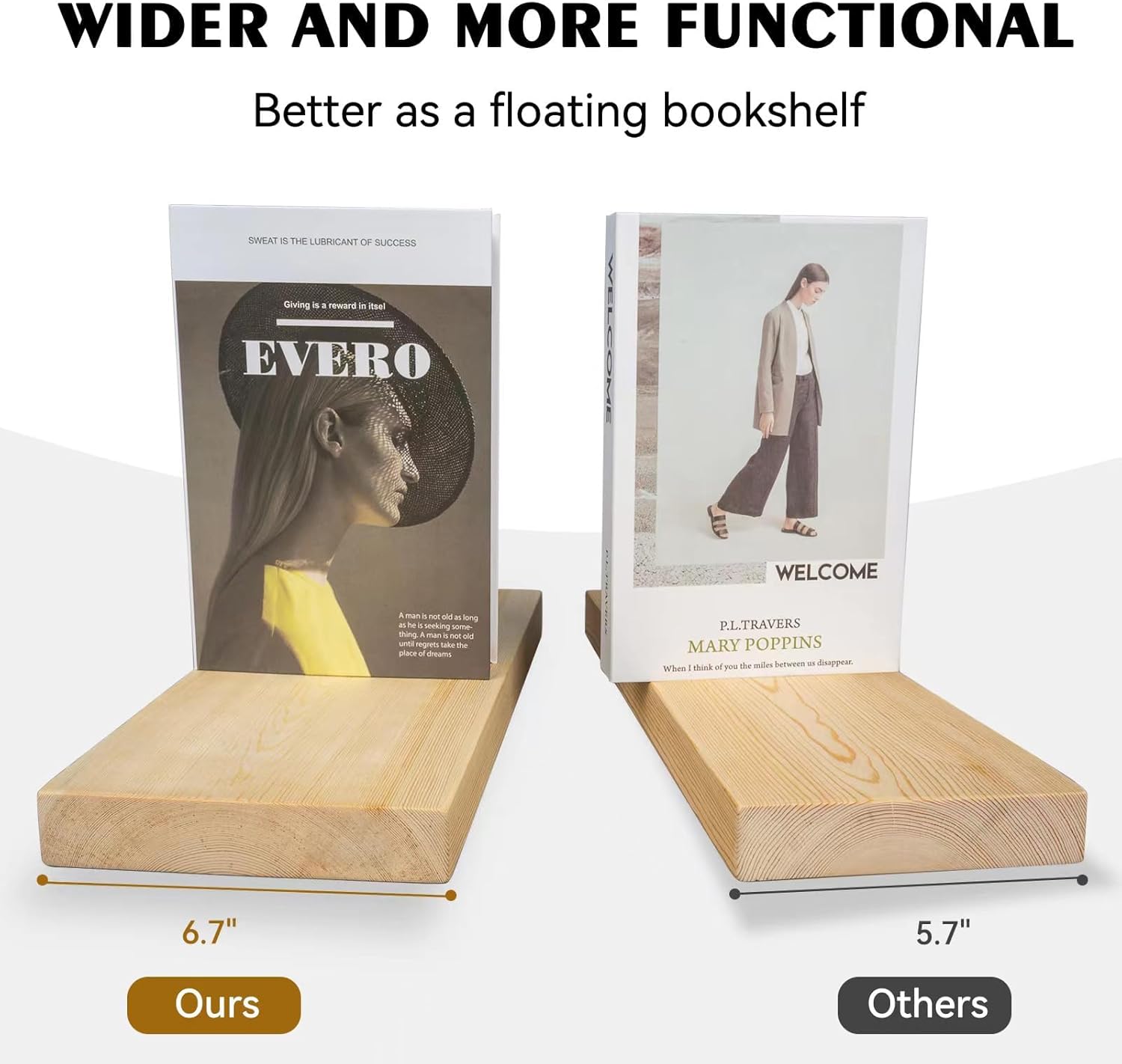 - MODERN RUSTIC LOOK - The floating shelves are made of natural pine, and the wood has different nodes and grains, so the color of each shelf may be slightly different, but equally stunning