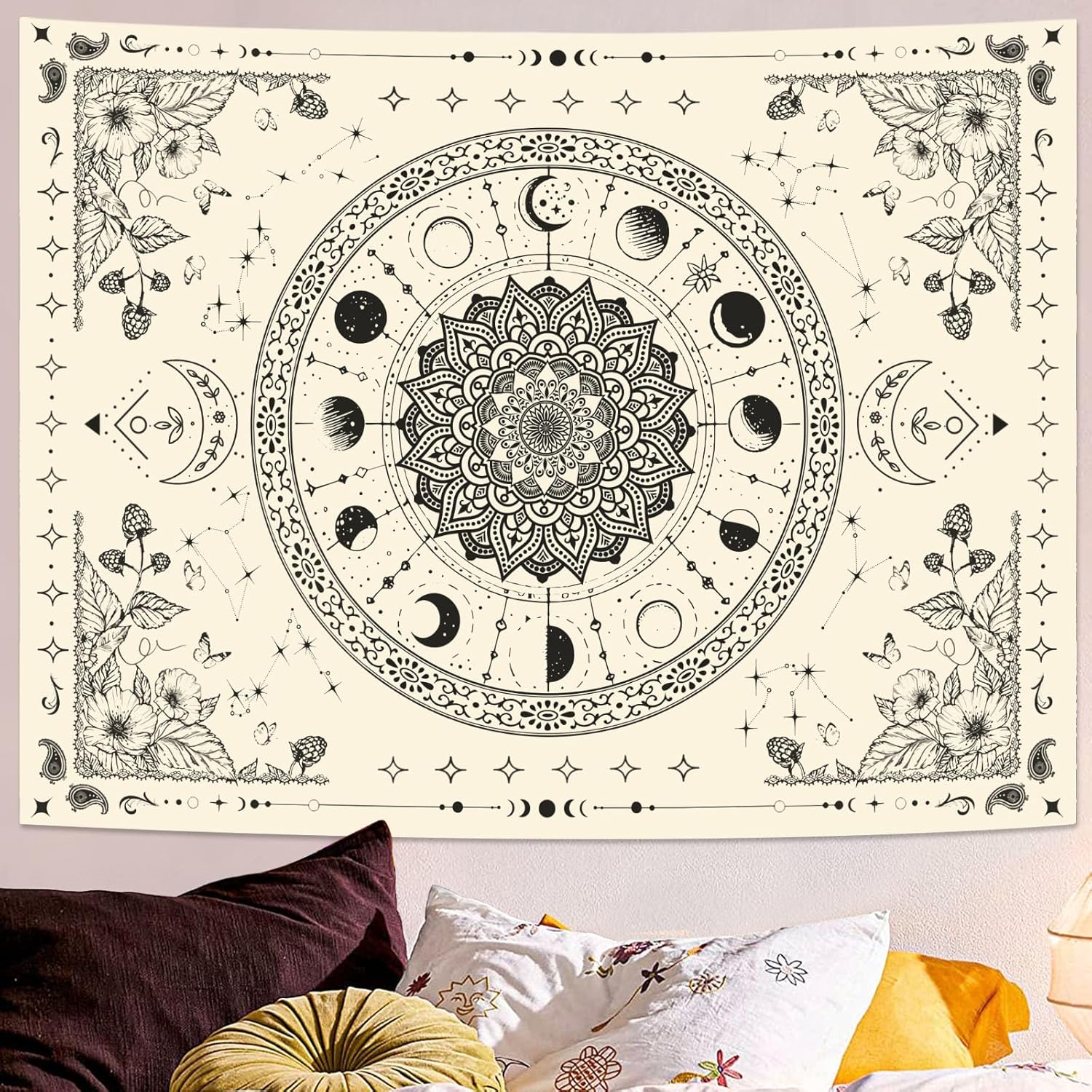 - Unique Mandala Moon Design: This Lunerfex tapestry features an intricate mandala design combined with cosmic elements, creating a mysterious and artistic touch for your bedroom or living room.