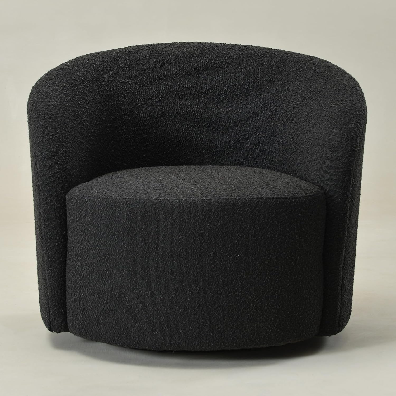 - Package Includes: 1 x boucle swivel barrel chair (Black, Dimensions: 32.7'' D X 34'' W X 28.5'' H, no assembly); 1 x boucle upholstered ottoman (Black, Dimensions: 18"D x 18"W x 18.3"H, no assembly). No throw pillow includes in this living room boucle chair ottoman furniture set.