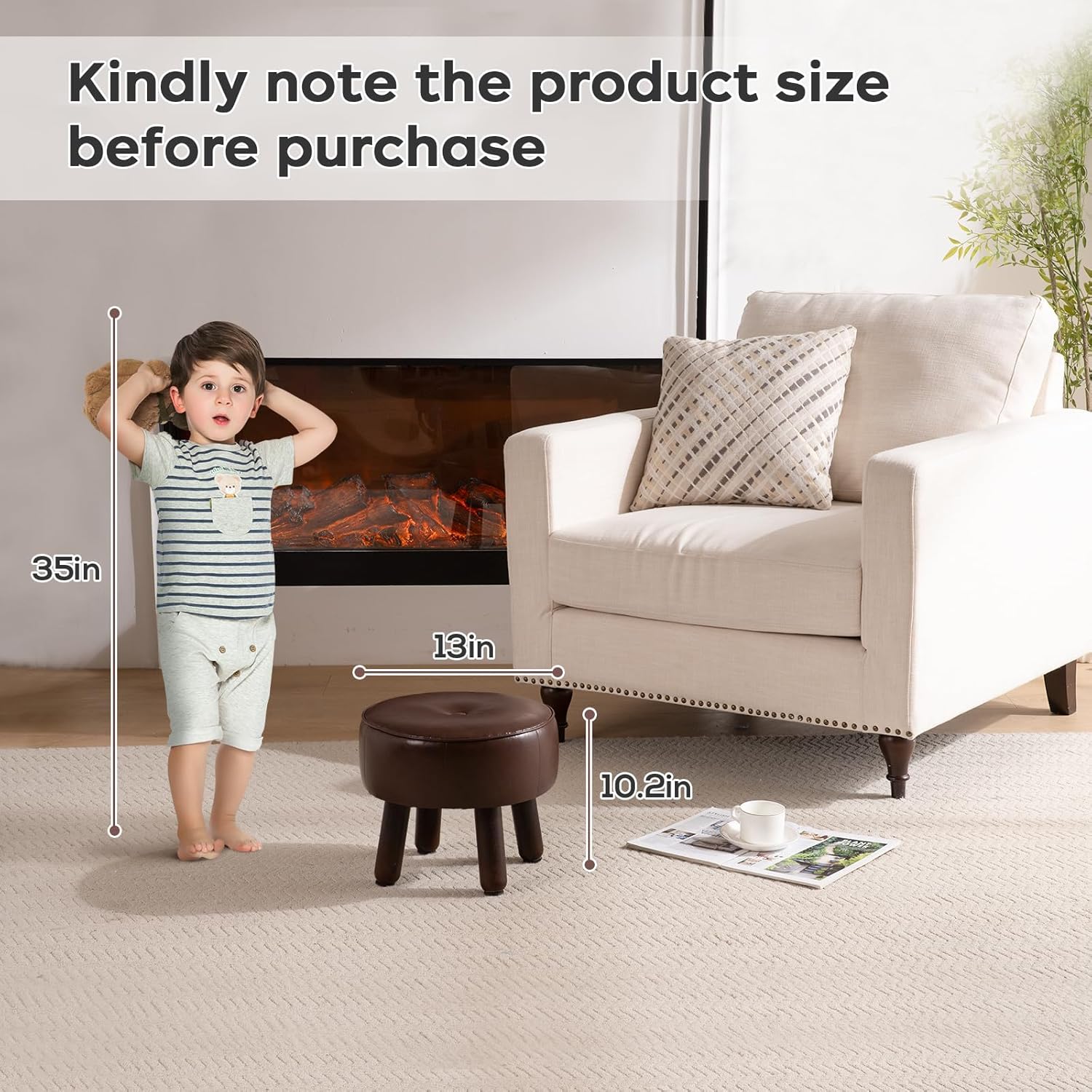 Small Foot Stool Ottoman, Round Pouf Foot Rest, Footstool Ottomans with Rubber Legs Under Desk, Faux Leather Footrest for Couch, Living Room, Bedroom, Office, 13''L x 13''W x 10.2''H, Coffee