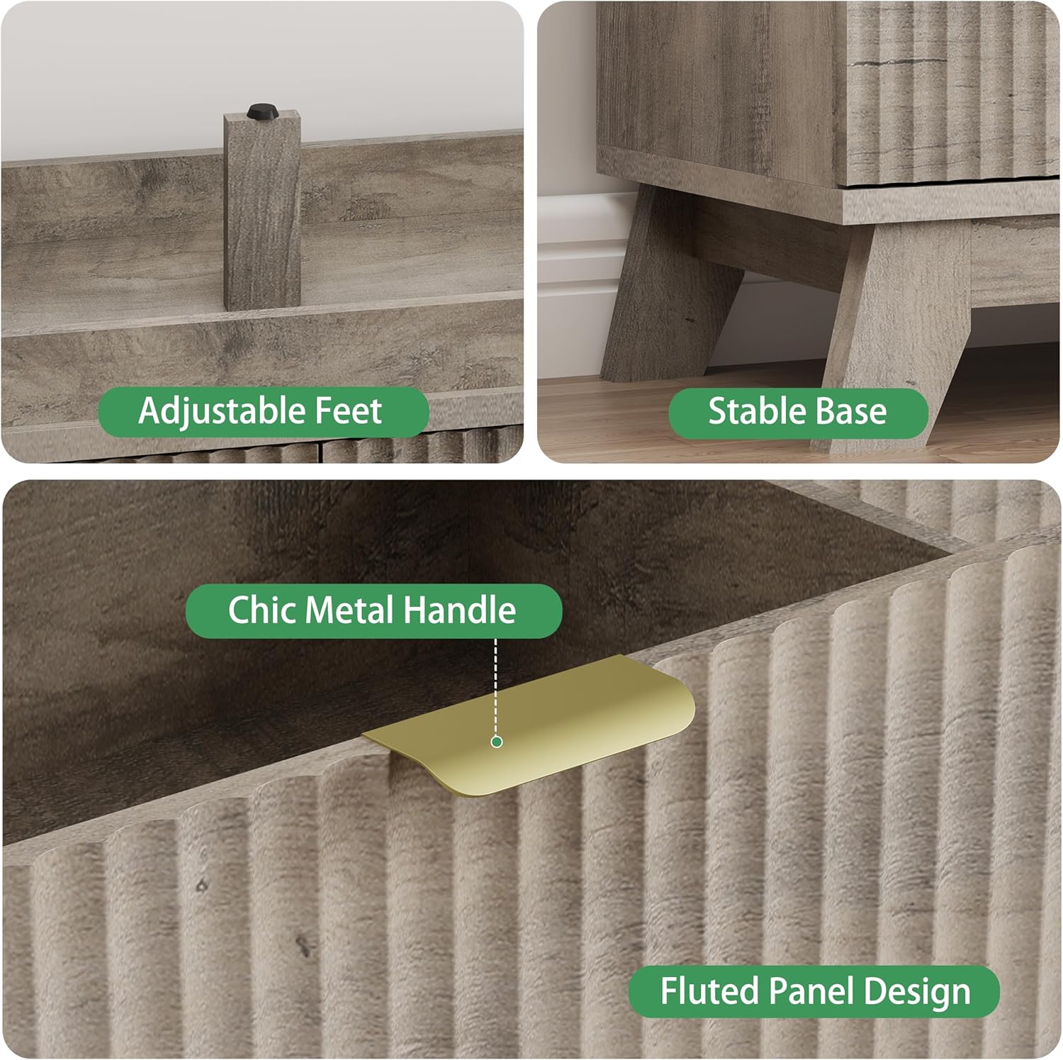 Fluted Dresser for Bedroom with 8 Drawers, 48" Wide Modern Chest of Drawers with Metal Handle, Wooden Dresser TV Stand, Wood Closet Clothes Storage Drawer Organizer for Living Room, Hallway, Grey