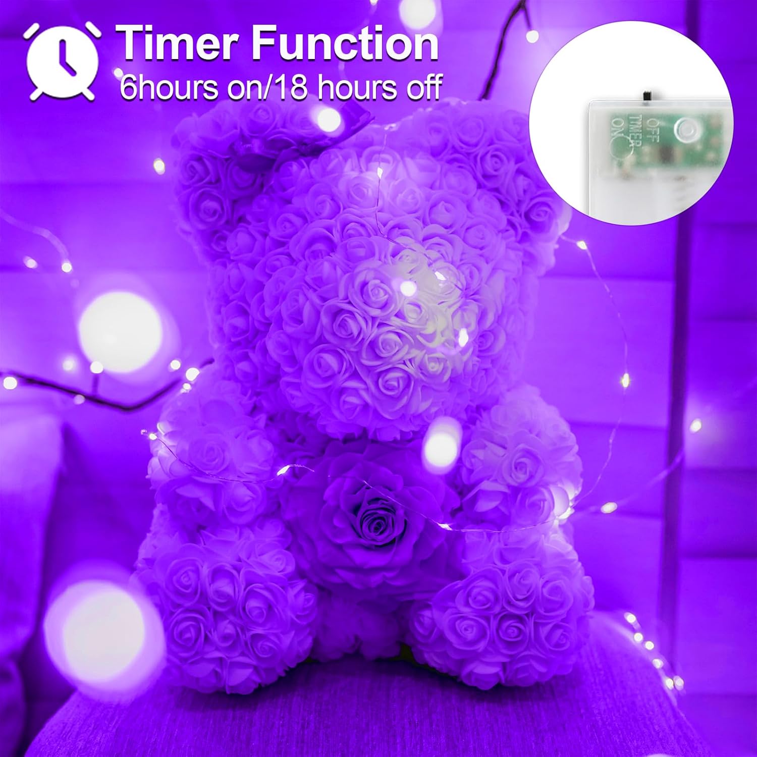 Halloween Christmas Decorations Purple Fairy String Lights Indoor, Battery Operated with Timer, 2Pack Total 33FT 100 Led Mini Battery Powered Twinkle Mason Jar Waterproof Firefly Lights DIY Party