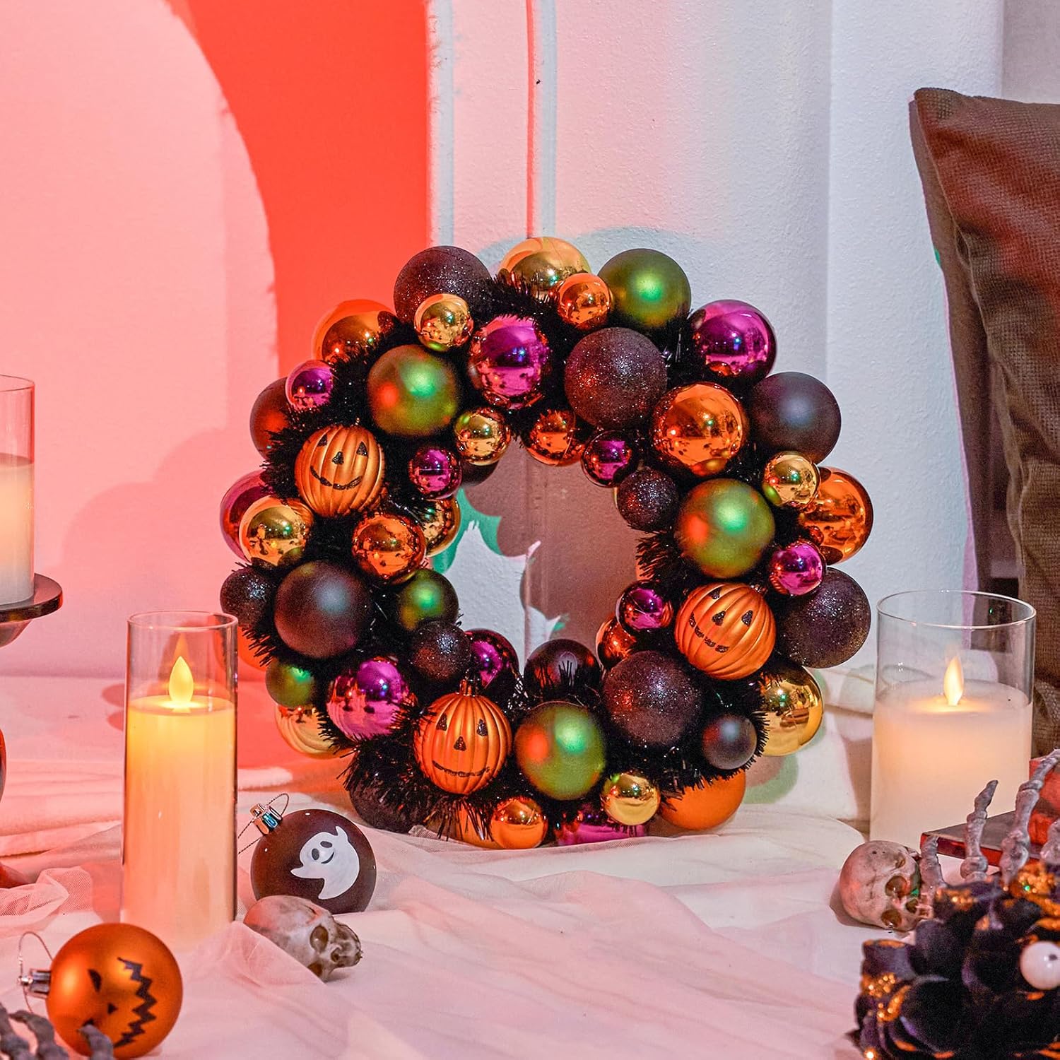 - π VERSATILE SPOOKTACULAR STYLE - More than Halloween! Its unique ball shape offers year-round versatility: * Halloween: Hang on doors, walls, or gates; use as a haunting centerpiece or shelf accent. * Beyond: Nestle into Thanksgiving centerpieces, incorporate into Gothic Christmas decor, or add dark elegance to bookcases and mantels year-round