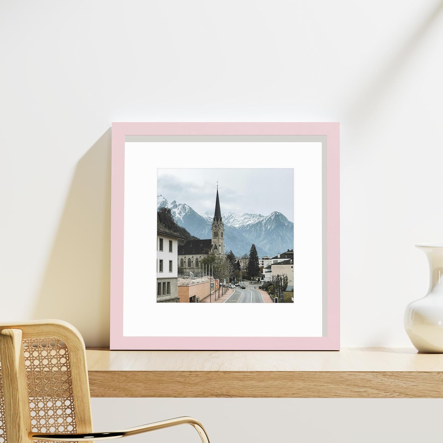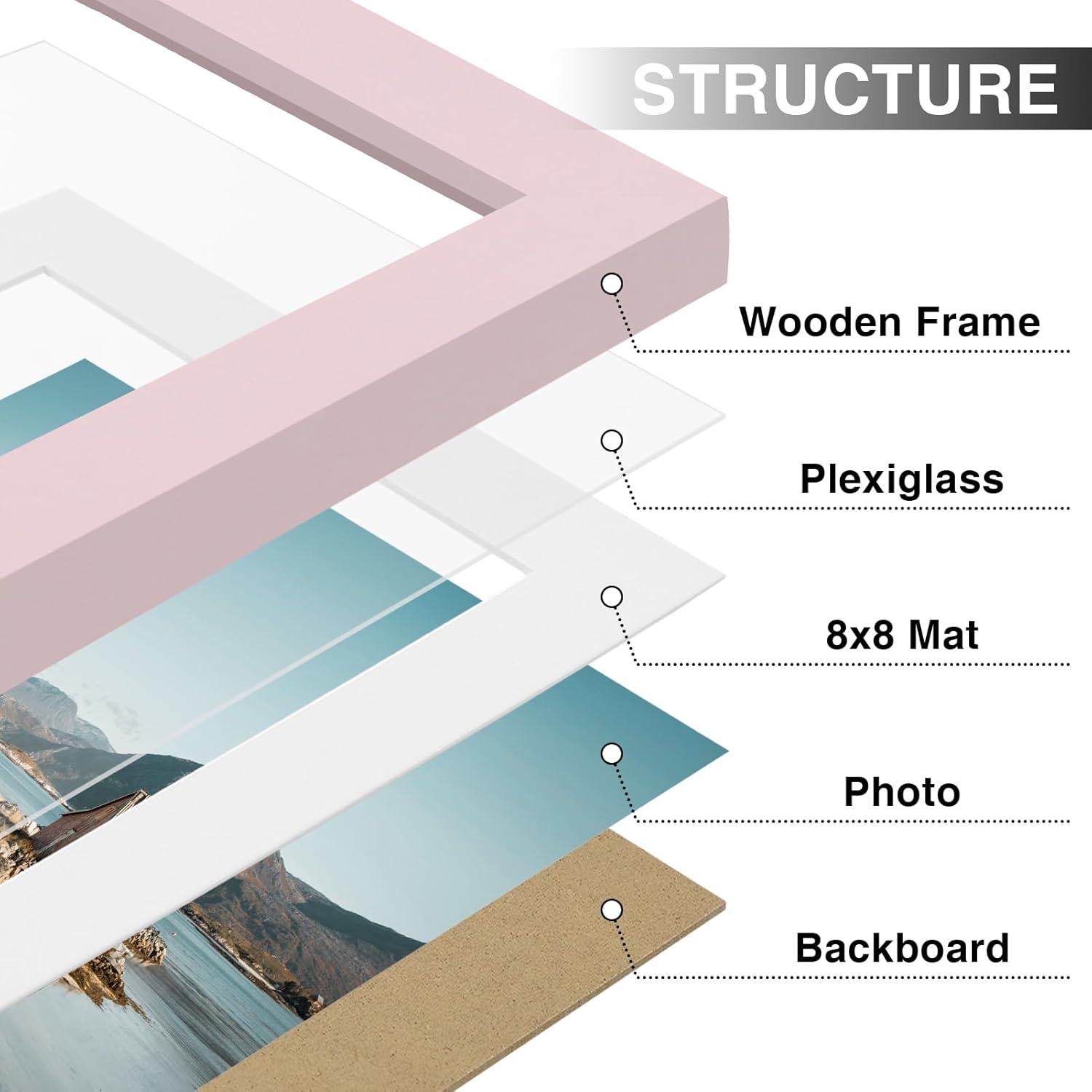Vittanly 12x12 Picture Frame Set of 9 - Display 8x8 Photos with Mat or 12x12 Without Mat, Wall Mount Frames for Home Decor, Horizontal or Vertical (Pink)