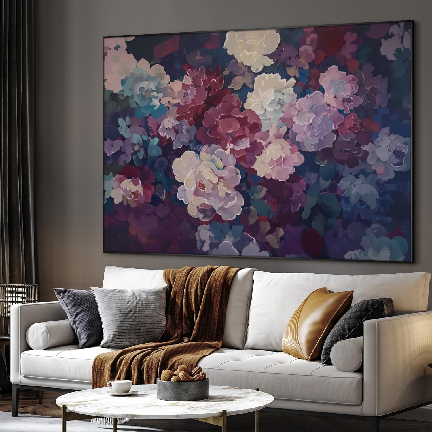 SIGNWIN 60"x72" Extra Large Framed Wall Art Bold Peony Bloom in Colorful Impressionist Style, Lush Floral for Home Living Room Bedroom Decor (Frame Assembly Required)