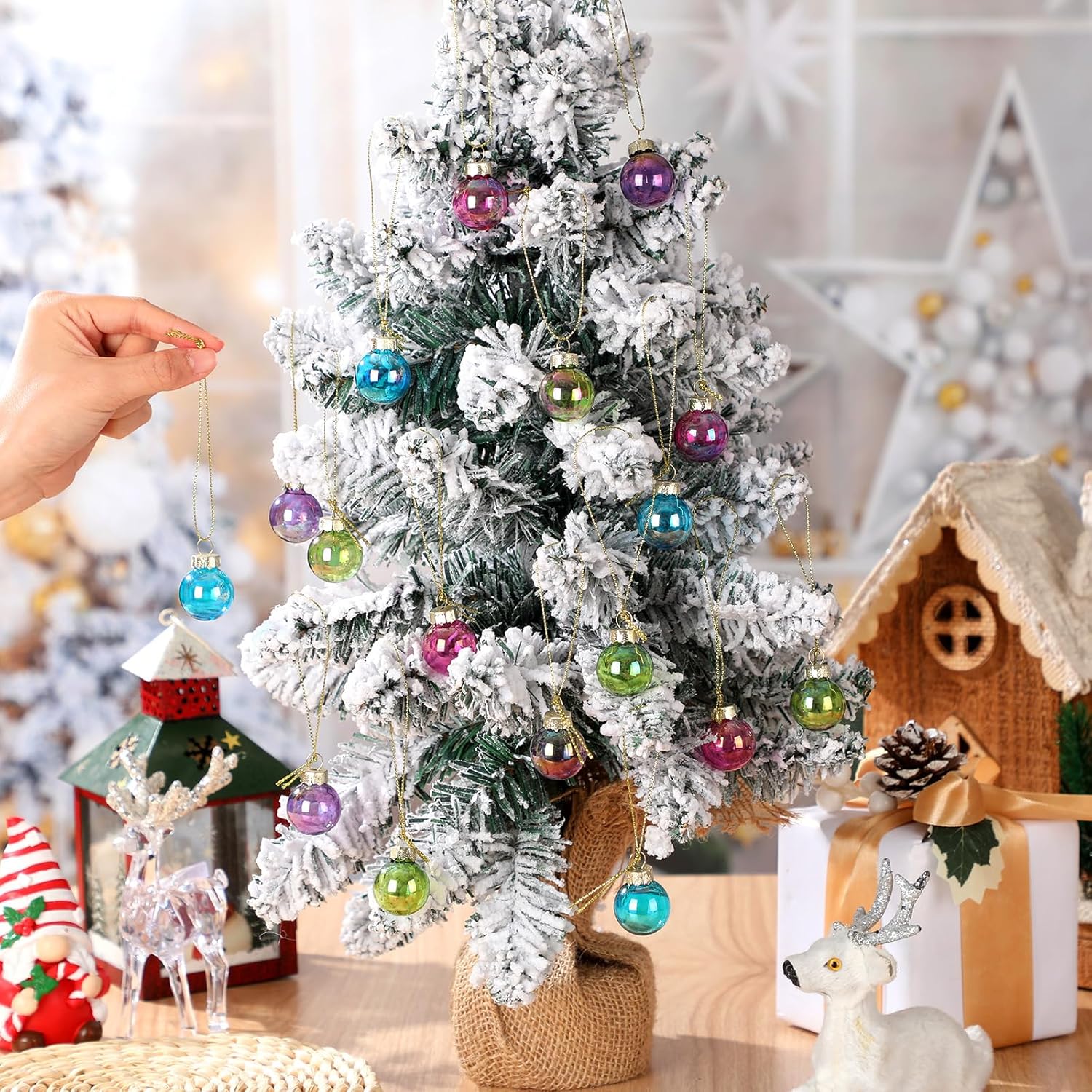 Tioncy 32 Pcs 1 Inch Mini Glass Christmas Ornaments Balls Shiny Christmas Balls Tiny Tree Hanging Decoration Small Colorful Ball Pendant for Xmas Party Supplies(Vibrant Color)