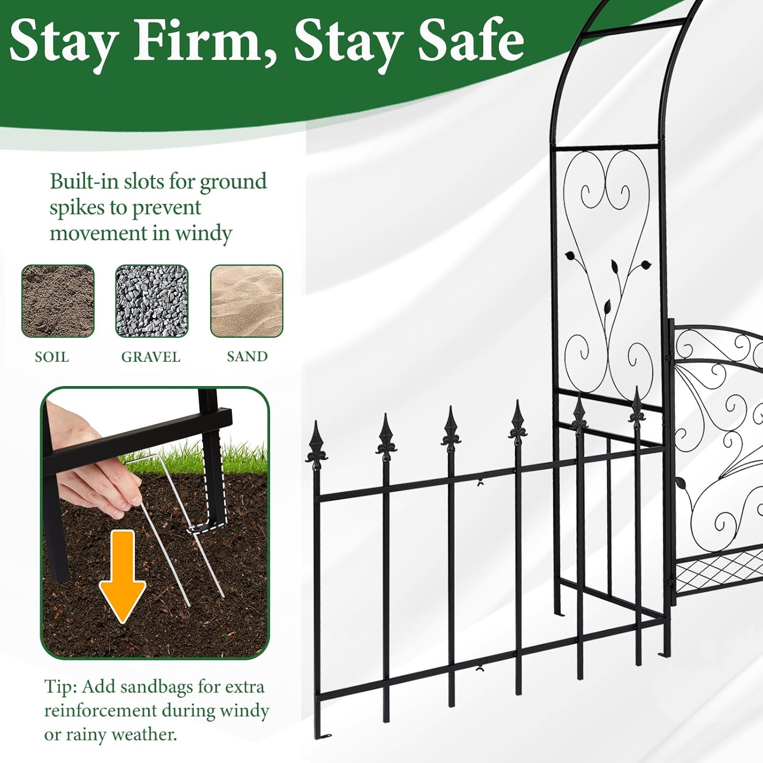 - Easy to install: This garden arch comes with all necessary hardware and installation tools. You can easily install it on your own according to the installation instructions.