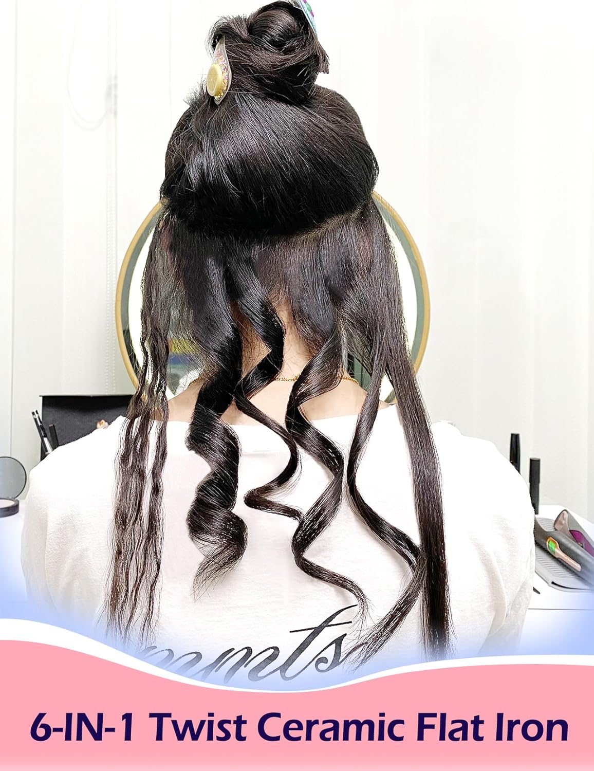 - 🌟【MULTI 6-IN-1 TOOL】 Our hair straightener features a unique twisted panel design, evenly heated panels, and a circular appearance design. Whether you have coarse, fine, or short hair, it can be easily straightened or curled. Gently sliding over your hair can achieve a glossy, non frizzy surface, creating a professional sandron level look