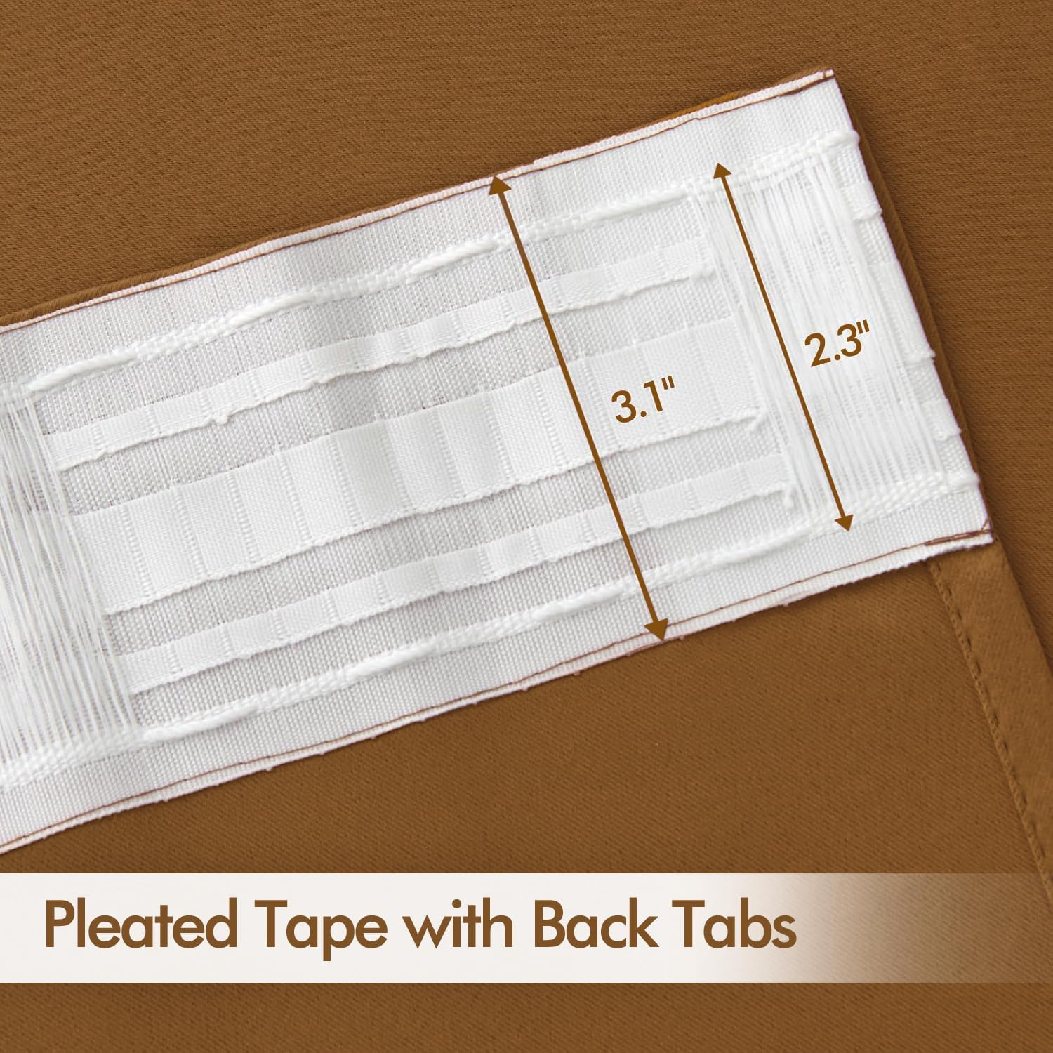 MIULEE Golden Brown Back Tab Blackout Curtains 120 Inch Long 2 Panels Set for Bedroom, Rod Pocket/Pinch Pleated Extra Long Thermal Insulated Living Room Darkening Light Blocking 10FT Drapes