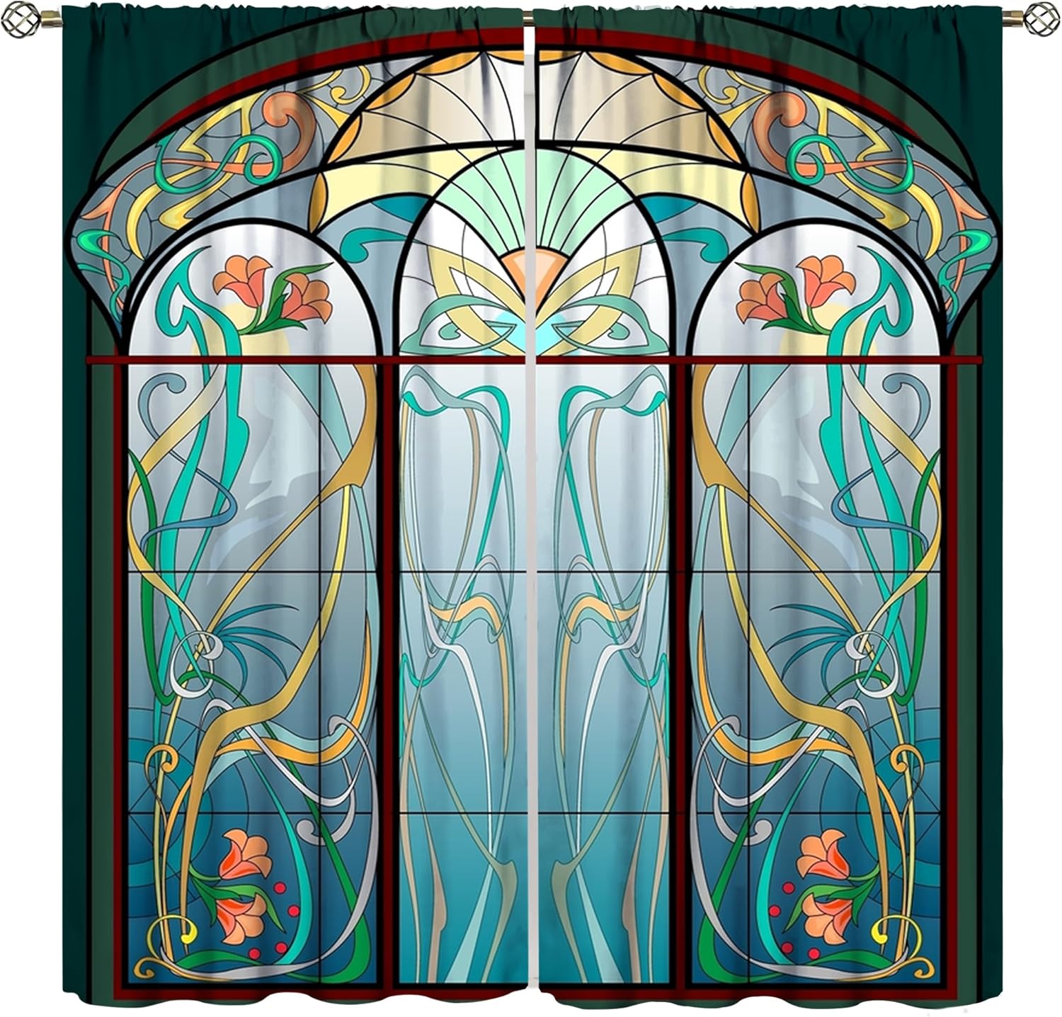 Stained Glass Curtains, Retro Mid Century Boho Abstract Art Home Decor Drapes for Bedroom Living Room Kitchen Window Treatment 2 Panels Set Total Size 72" W X 63" L Inch
