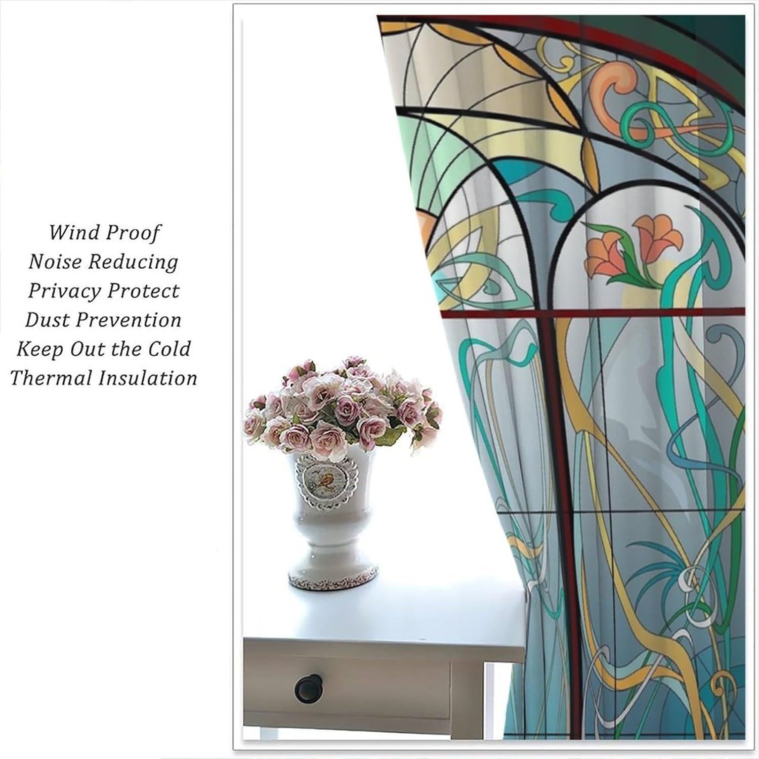 Stained Glass Curtains, Retro Mid Century Boho Abstract Art Home Decor Drapes for Bedroom Living Room Kitchen Window Treatment 2 Panels Set Total Size 55" W X 63" L Inch