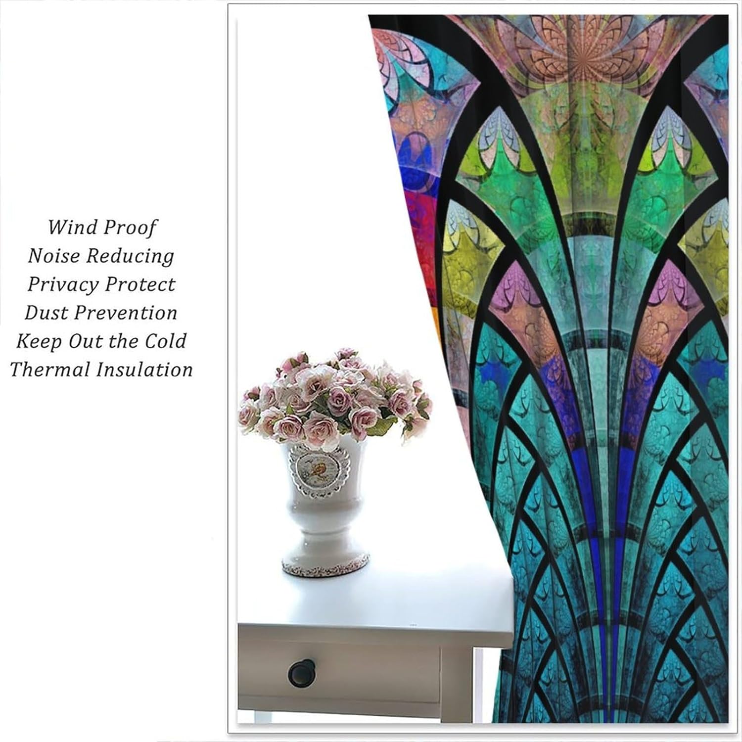 Stained Glass Curtains,Retro Design Style Colorful Abstract Art Home Decor Drapes for Bedroom Living Room Kitchen Window Treatment 2 Panels Set Total Size 72" W X 63" L Inch