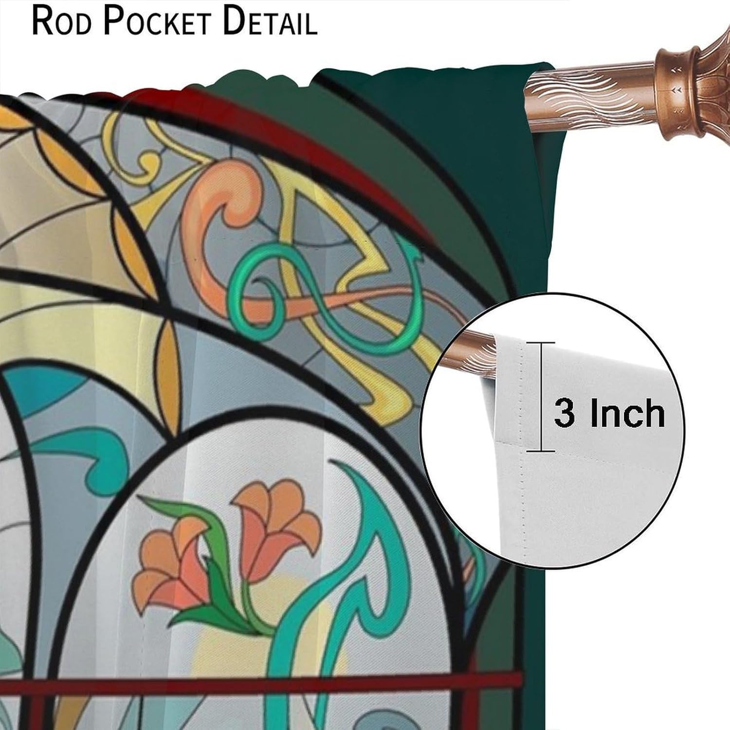 Stained Glass Curtains, Retro Mid Century Boho Abstract Art Home Decor Drapes for Bedroom Living Room Kitchen Window Treatment 2 Panels Set Total Size 42" W X 45" L Inch