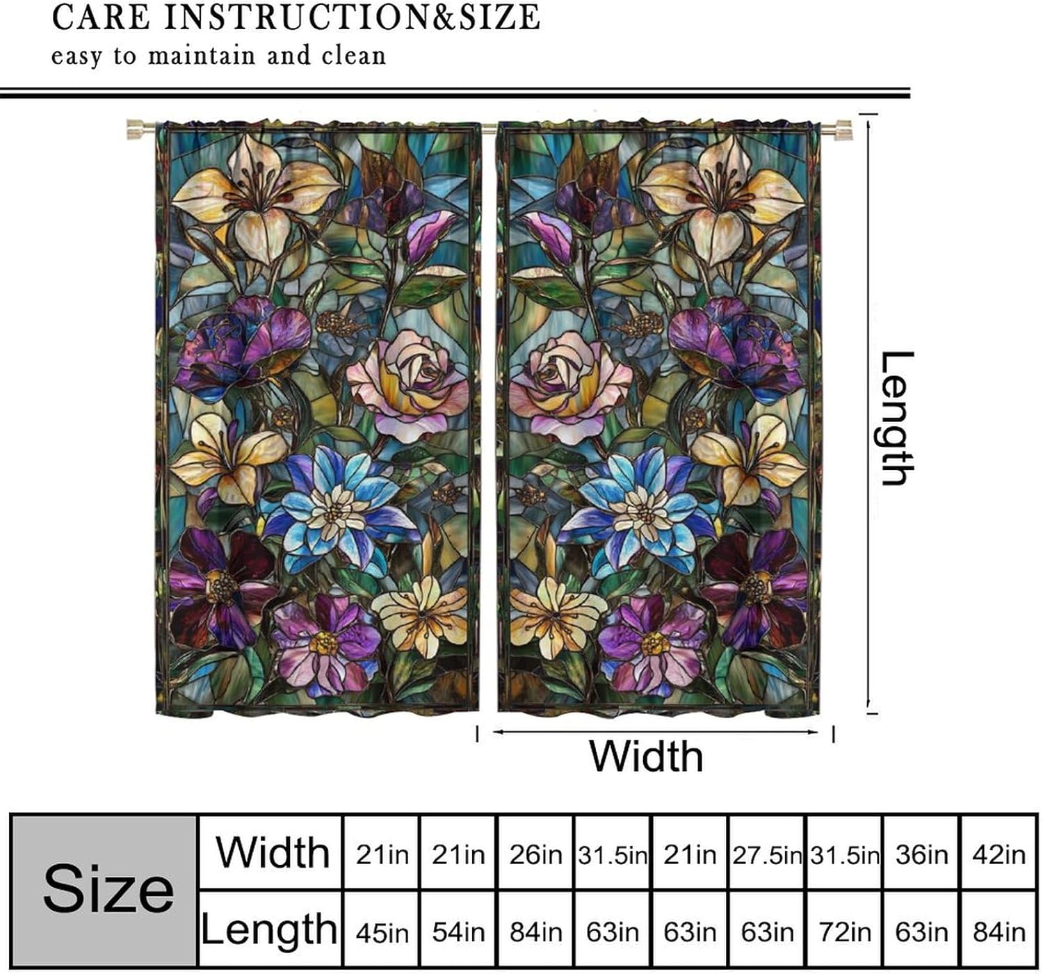 Stained Glass Curtains,Retro Colored Glass Flowers Art Home Decor Drapes for Bedroom Living Room Kitchen Window Treatment 2 Panels Set Total Size 63" W X 72" L Inch