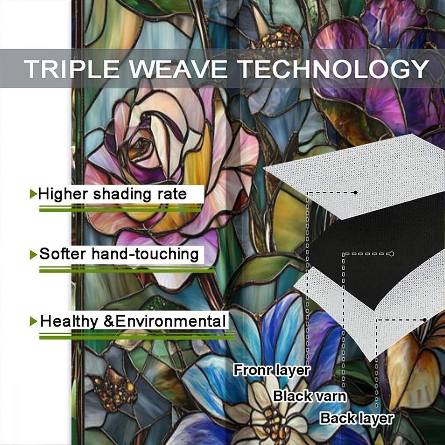 Stained Glass Curtains,Retro Colored Glass Flowers Art Home Decor Drapes for Bedroom Living Room Kitchen Window Treatment 2 Panels Set Total Size 52" W X 84" L Inch