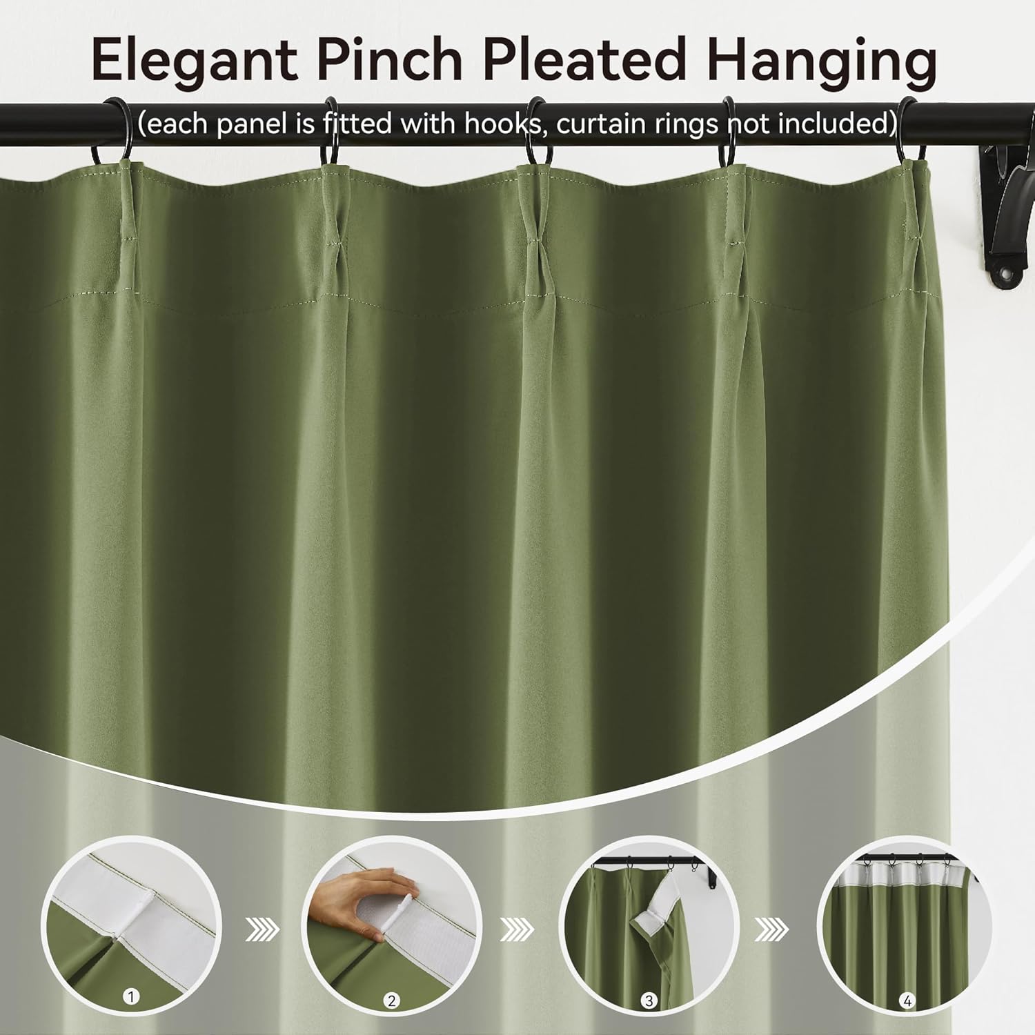 KangBang Pinch Pleated 108 Inch Blackout Curtains 2 Panels Set, Room Darkening Noise Canceling Polyester Window Treatments Elegant Memory Trained Drapes for Living Room Dining,40”Wx108”L, Sage Green