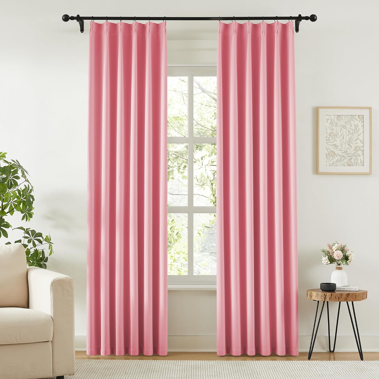 KangBang Pink Pinch Pleated Curtains 90 Inches Long for Bedroom, Blackout Energy Saving Aesthetic Modern Peach Pink Curtains & Drapes with Adjustable Hooks 2 Panels,40Wx90L