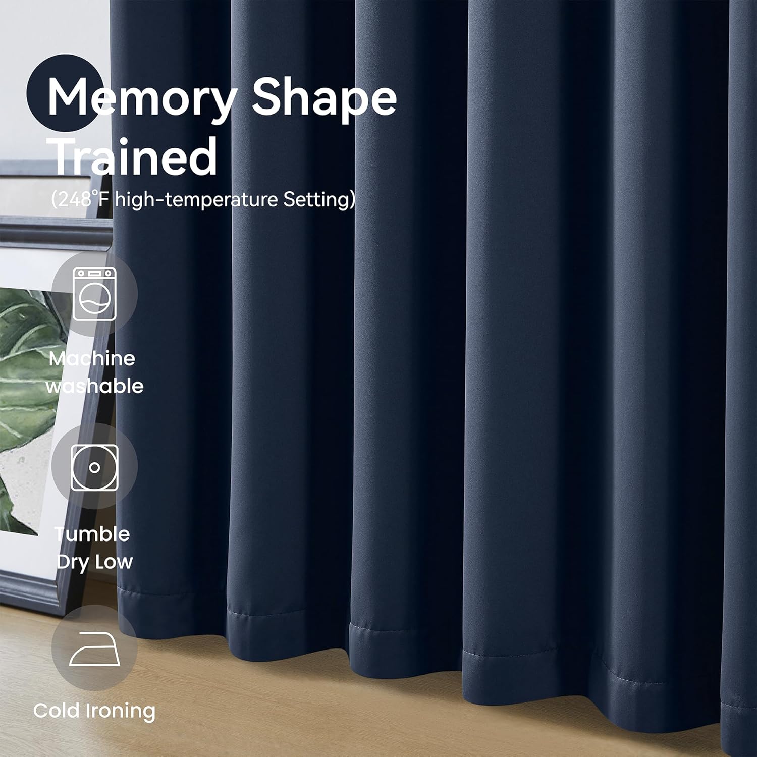 KangBang 102 Inch Blue Curtains Blackout Drapes for Living Room, Pinch Pleated Energy Saving Sound Reducing Polyester Memory Shape Window Panels with Hooks(Navy Blue,40Wx102L,2 Panels)