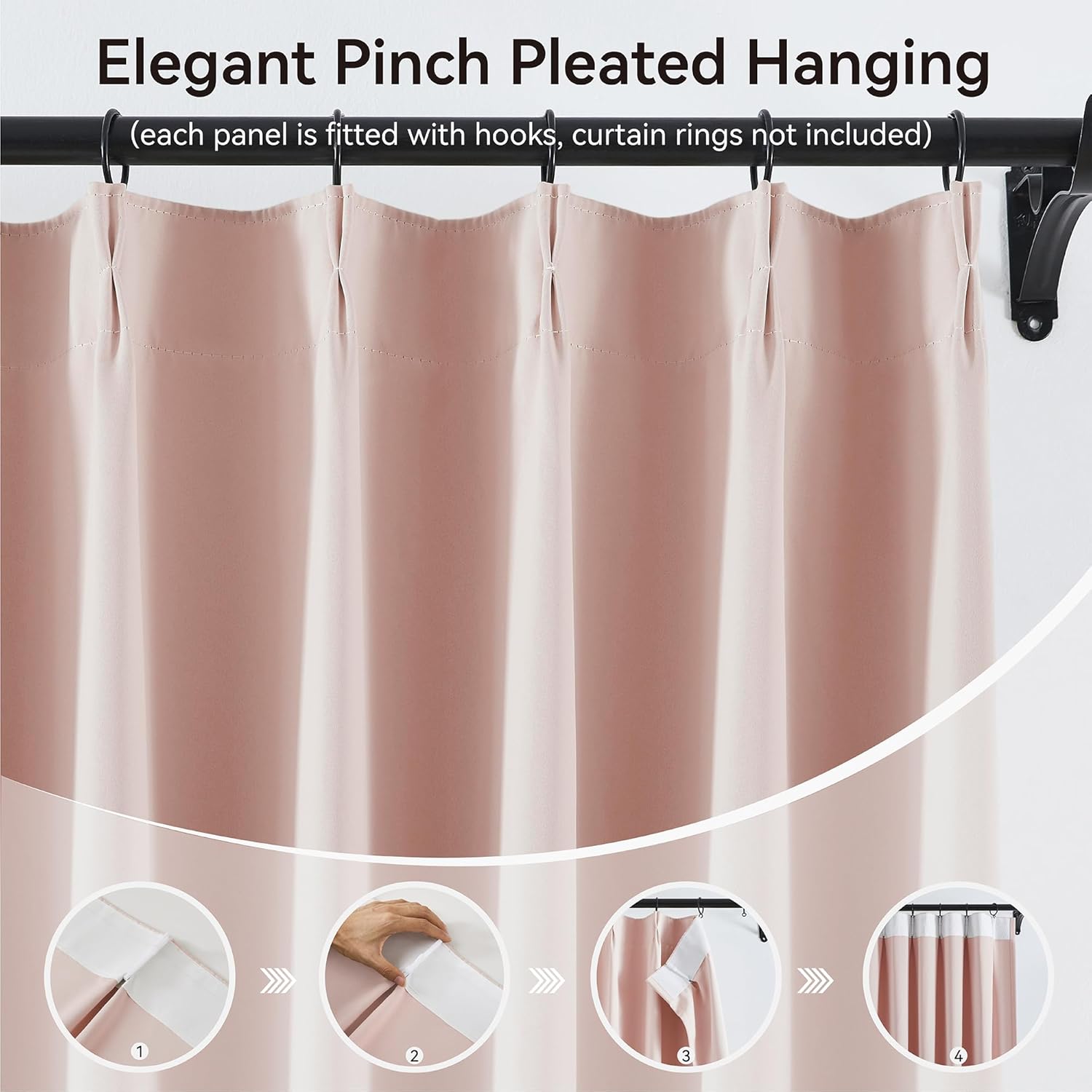 KangBang Pink Pinch Pleated Curtains for Sliding Glass Door 102 Inches Long, Extra Wide Light Blocking Elegant Modern Window Treatments for Kids Playroom with Hooks 2 Panels, W60xL102, Baby Pink