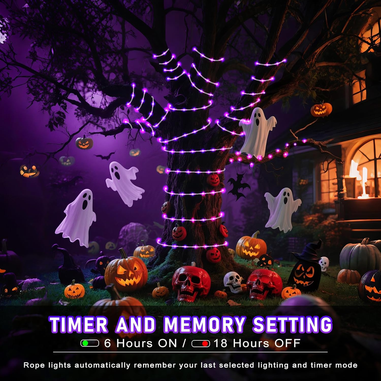 Purple Halloween Lights, 100FT 300 LED Rope Lights for Outside Waterproof with 8 Modes, Connectable Fairy String Lights for Indoor Patio, Trampoline, Garden, Pool, Holiday Decorations