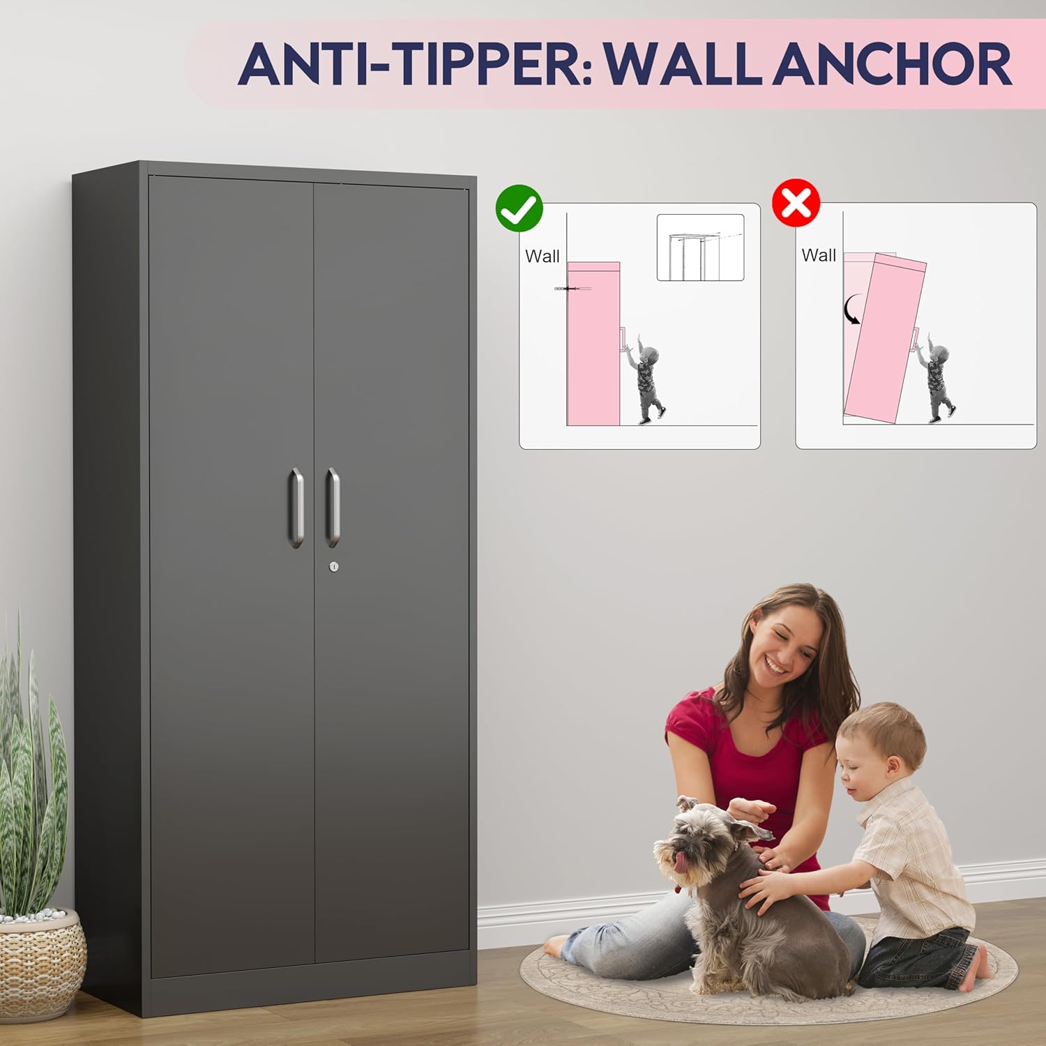 - Versatile for Home Office Use: Ideal as a locker storage cabinet in garages, kitchens, or offices, it organizes pantry items, cleaning supplies, or work tools. The slim 15" width fits tight spaces, while leveling feet adapt to uneven floors