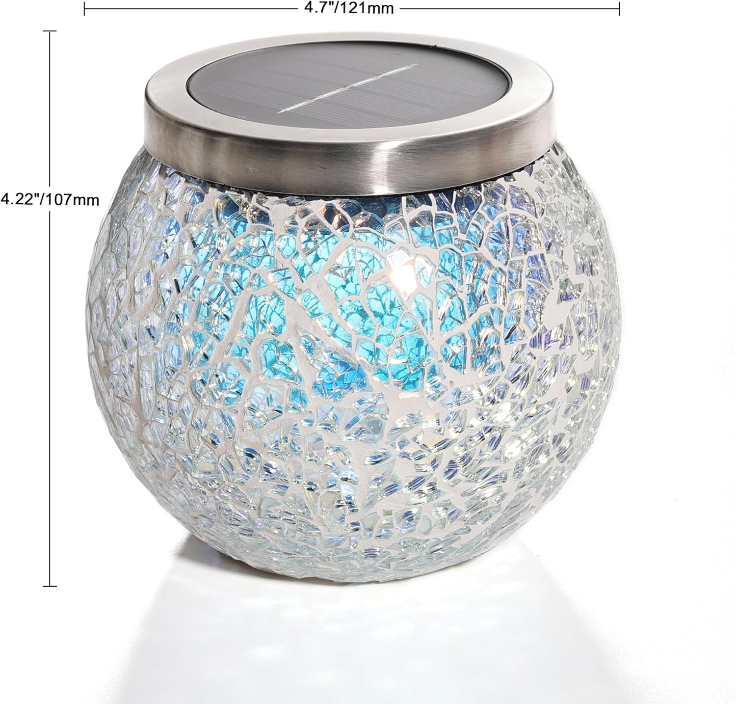 Cooo 6 Pack Heavy Solar Mosaic Crackle Glass Lights with Dual Solar Panels, Color-Changing RGB Lantern, Exclusive Dazzling Glass, Waterproof Outdoor Table Lamps Garden Lamp Landscape Path Light