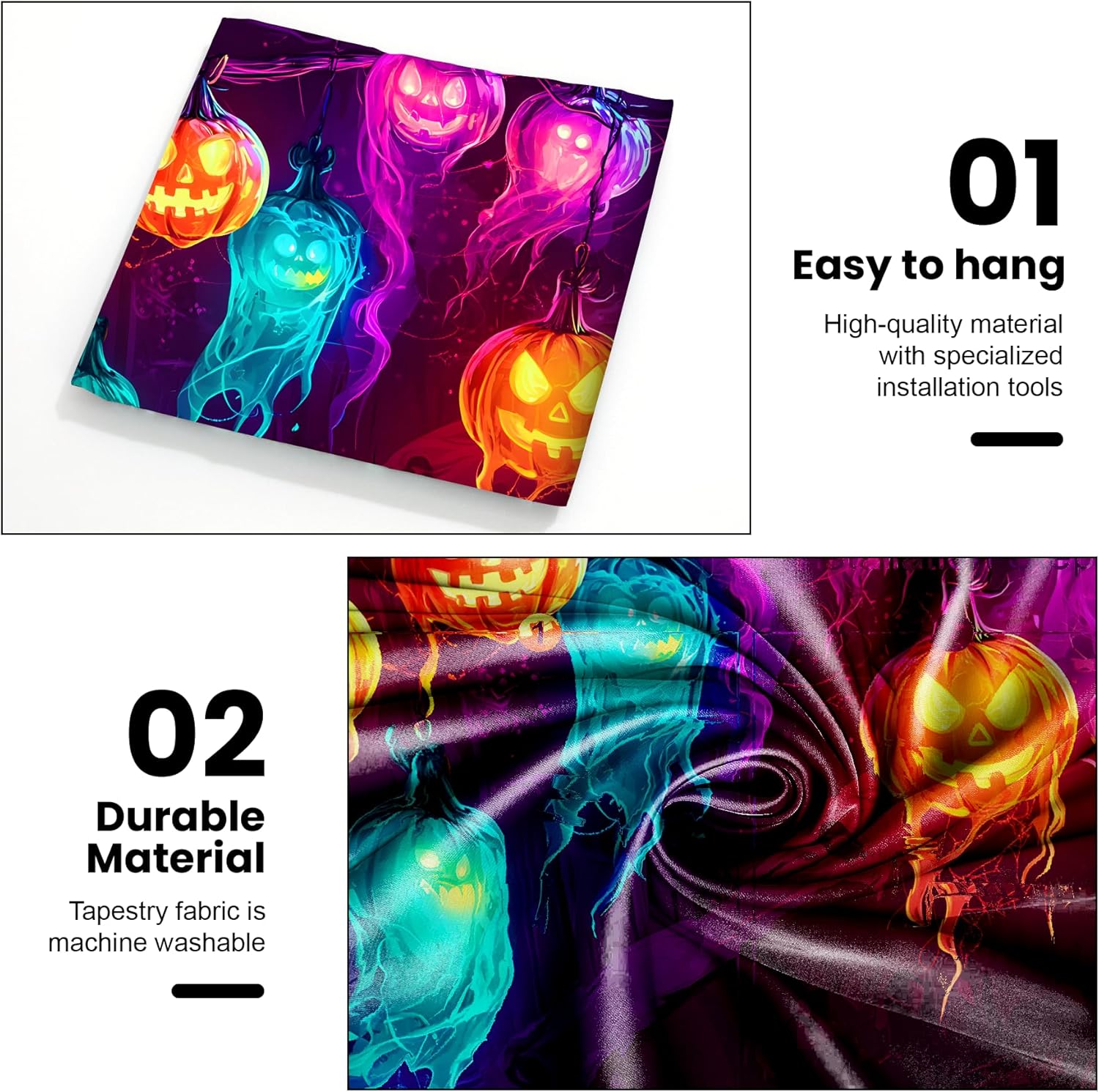 - 【Durable & Versatile】Made from premium polyester, this lightweight yet durable fabric works as wall art, a curtain, tablecloth, or photo backdrop for unforgettable Halloween moments.