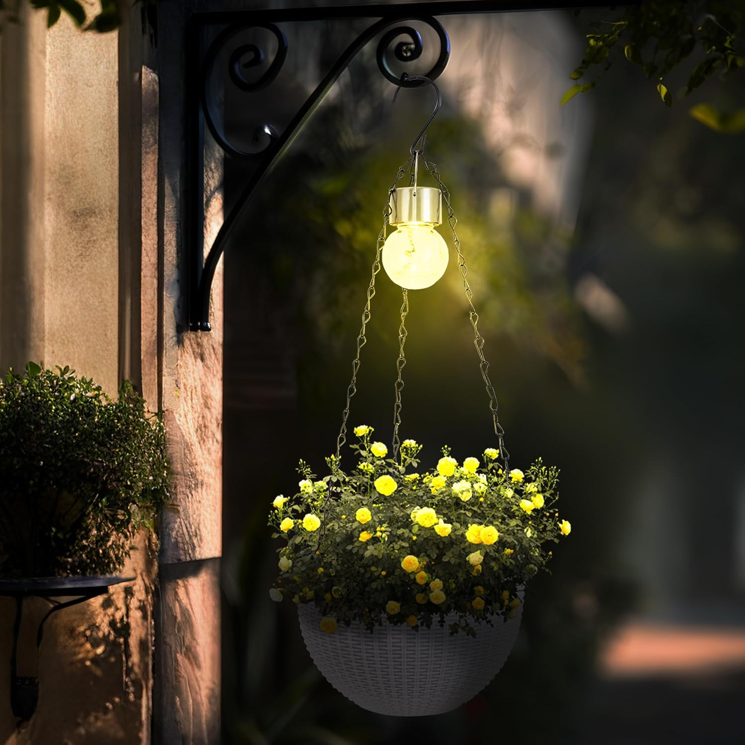 - Hanging Basket Planters: Each set includes two 29” tall hanging pots with chains and hooks-Artificial Rattan and special lighting design, the hanging sphere planters features a contemporary craft look for stylishly elevating any outdoor space