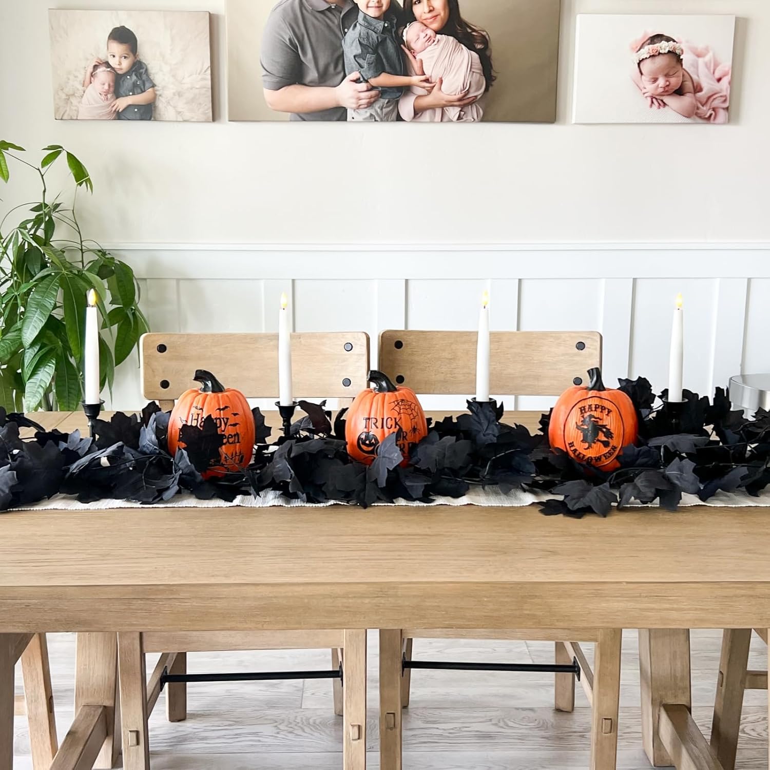 - DURABLE and REUSABLE: Sturdy and texture clear black garland are made of fabric, stems are made of plastic, but looks like real fresh preserved Hallowend Garland which is lightweight,no wilting, fading or get easily damaged. and adapt to all kinds of weather. Black fall maple leaves does not require any sort of special care.