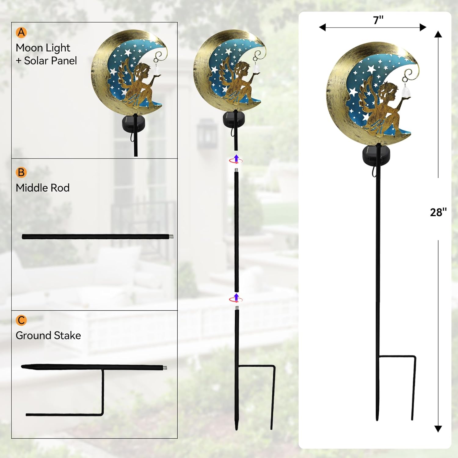- Symbolic Memorial Accent: The moon solar garden stake light is perfect for memorial gardens, meditation corners, or moonlight strolls, patio, walkways, pathway, lawns or flower bed; Day or night, it adds color and personality to any outdoor space