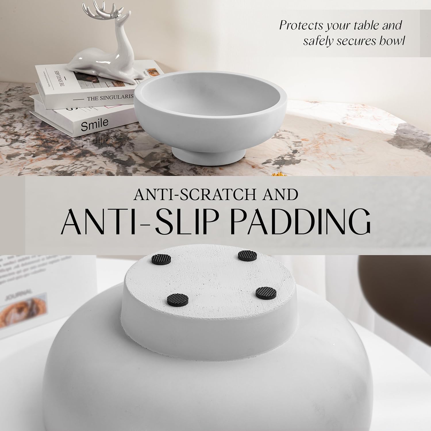 - 【FUNCTIONAL LUXURY】Whether used as a fruit bowl, key holder, catch all bowl or centerpiece, our concrete bowl adds a touch of refined style. The padded bottom protects your table while keeping your bowl steady on any table or countertop.
