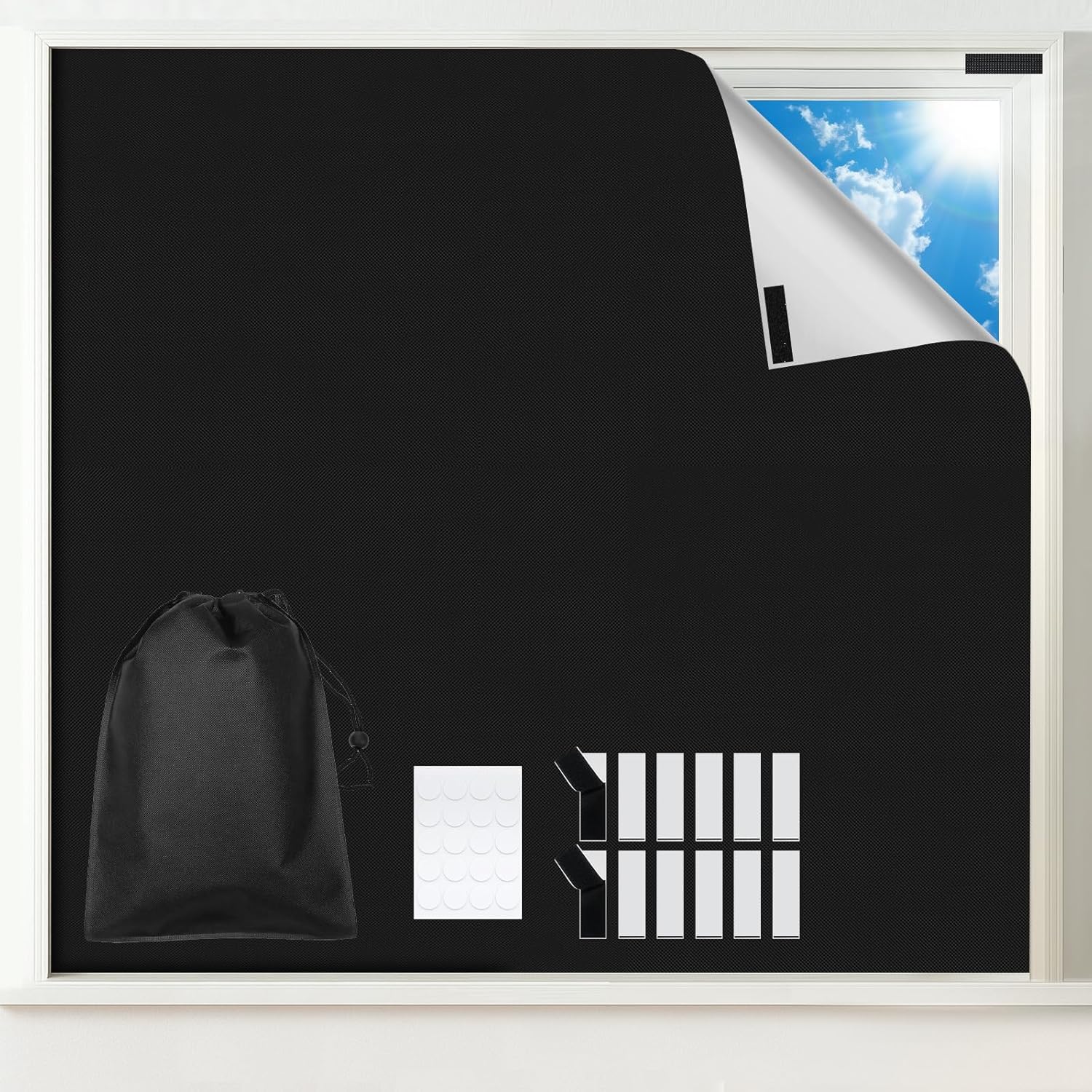 - ăCut to Any SizeăNo drill blackout blinds and Easy to install within minutes. This removable blackout window cover is not like usual curtain, it can be easily cut to any shapes you need. Prefect suited for skylights, curved windows, casement windows, sliding windows, bay windows. It's better to cut the window blackout cover oversized compared to the window to minimize the light entering.