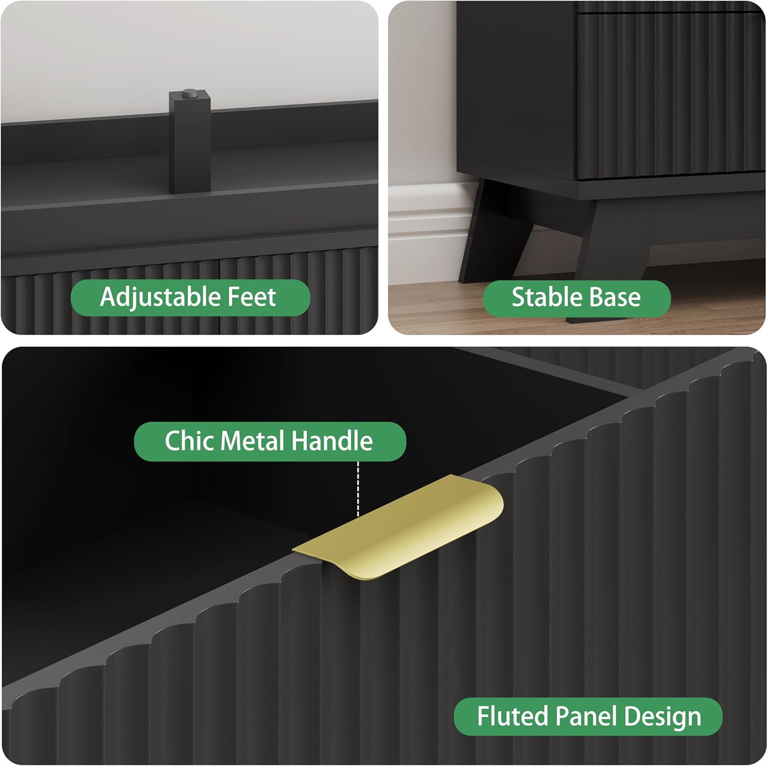 - ăStability & SafetyăThe white/black/natural oak dresser is equipped with an anti-tipping device, which can be fixed on the wall to prevent accidents. Each drawer contains a wide metal handle and built-in slide rail, easy to push and pull. Besides, the sturdy base provides this dresser with drawers a strong support and the middle feet can be adjustable to keep balance on uneven floors