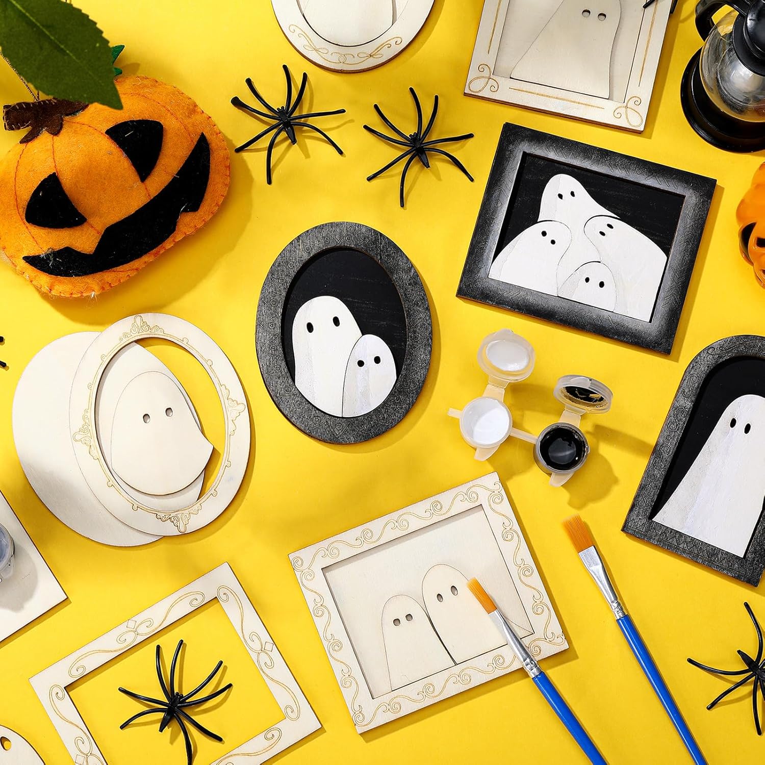- Style and Quantity: this ghost photo frame set contains 12 sets of wooden ghost photo frames and comes with 6 sets of black and white paints and brushes; Each ghost photo frame has a unique shape and is sufficient in quantity, suitable for multiple people to participate in DIY creation and enjoy the fun of Halloween together