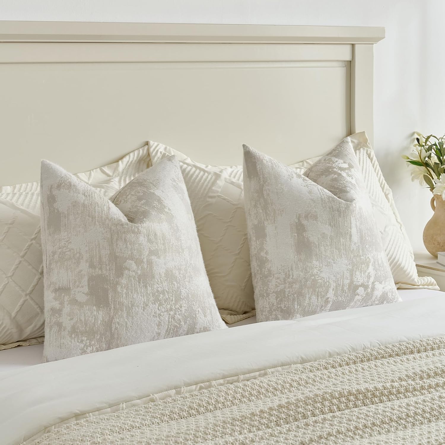 FUTEI Beige White Decorative Throw Pillow Covers 20x20 Inch Set of 2,Soft Faux Cashmere Jacquard - Textured & Cozy Cushion Case,Modern Home Decor for Couch Bed Living Room