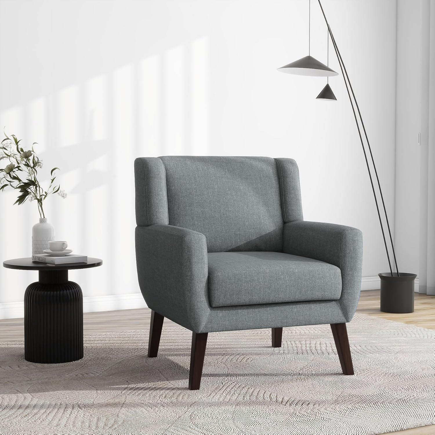 UIXE Accent Chair, Fabric Upholstered Armchair for Living Room, Comfy Arm Chair Single Sofa Bedroom Side Reading Seat - Flax Gray