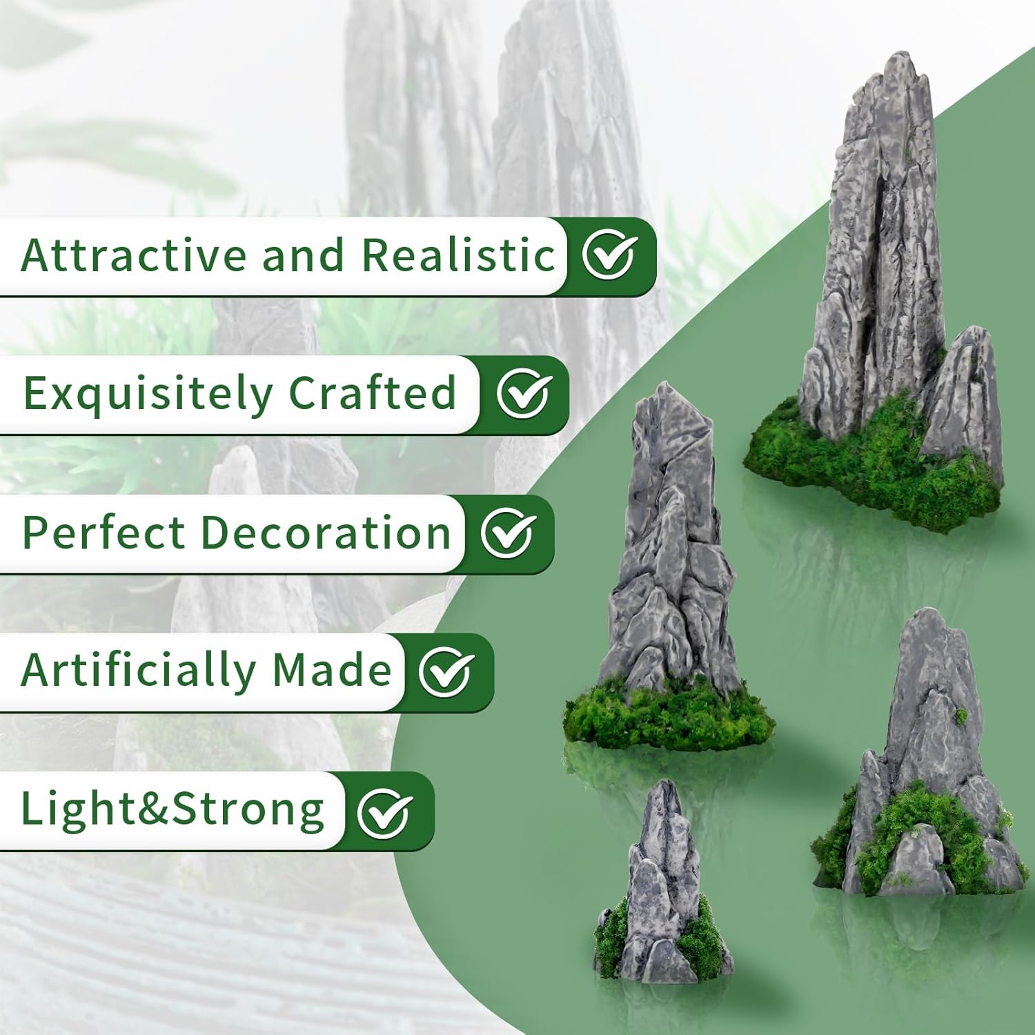 - This mini landscape decor kit features 8 beautifully carved mountain stones, crafted with precision for durability and chip resistance.