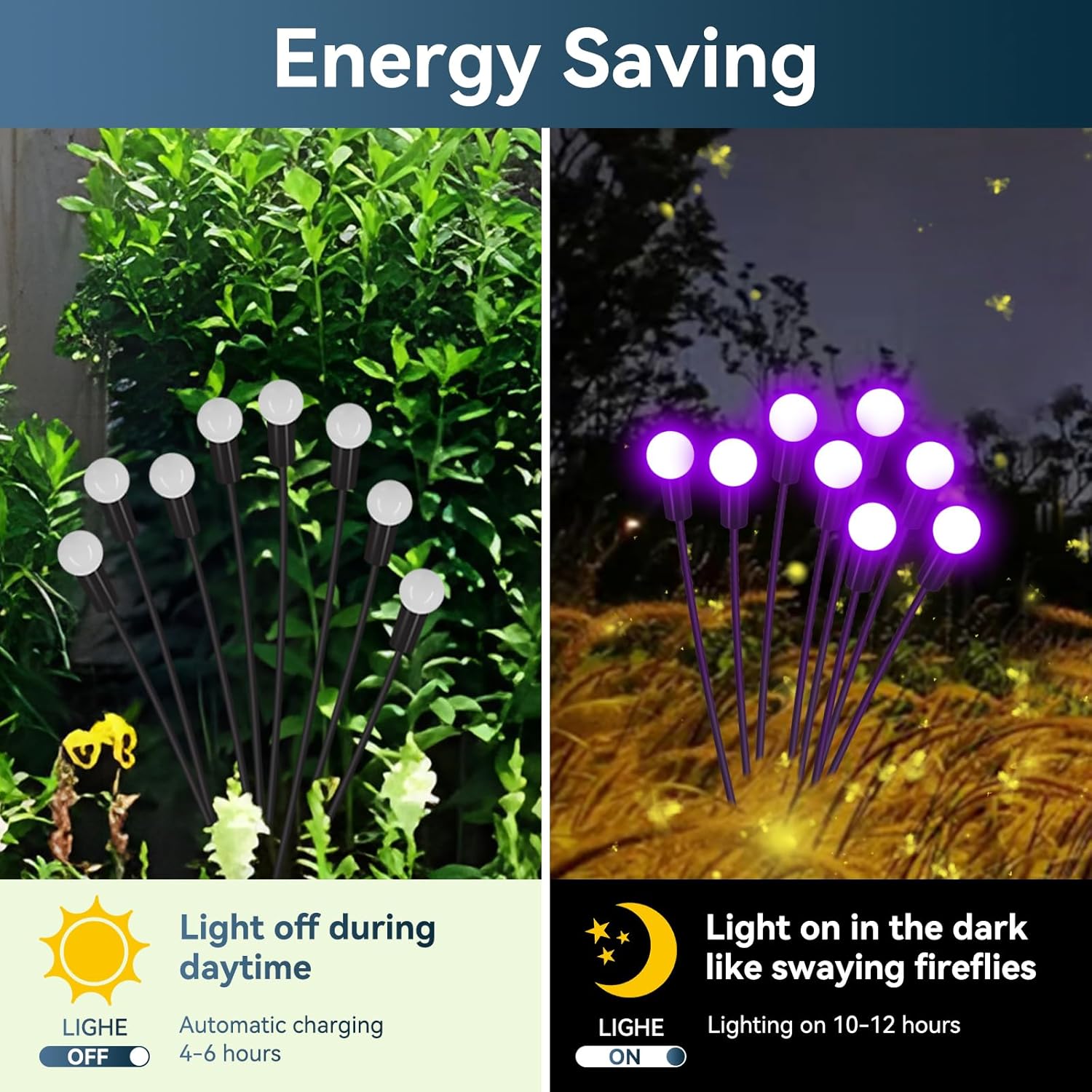 - Solar Garden Lights with Firefly Designed - The solar garden lights with high quality for garden decor, designed with soft and flexible branches to sway and dance when wind blows. This outdoor lights flying in the dark night like a firefly, make you feel relaxing and entertaining. Add a lot of vitality to your garden and create a romantic atmosphere.