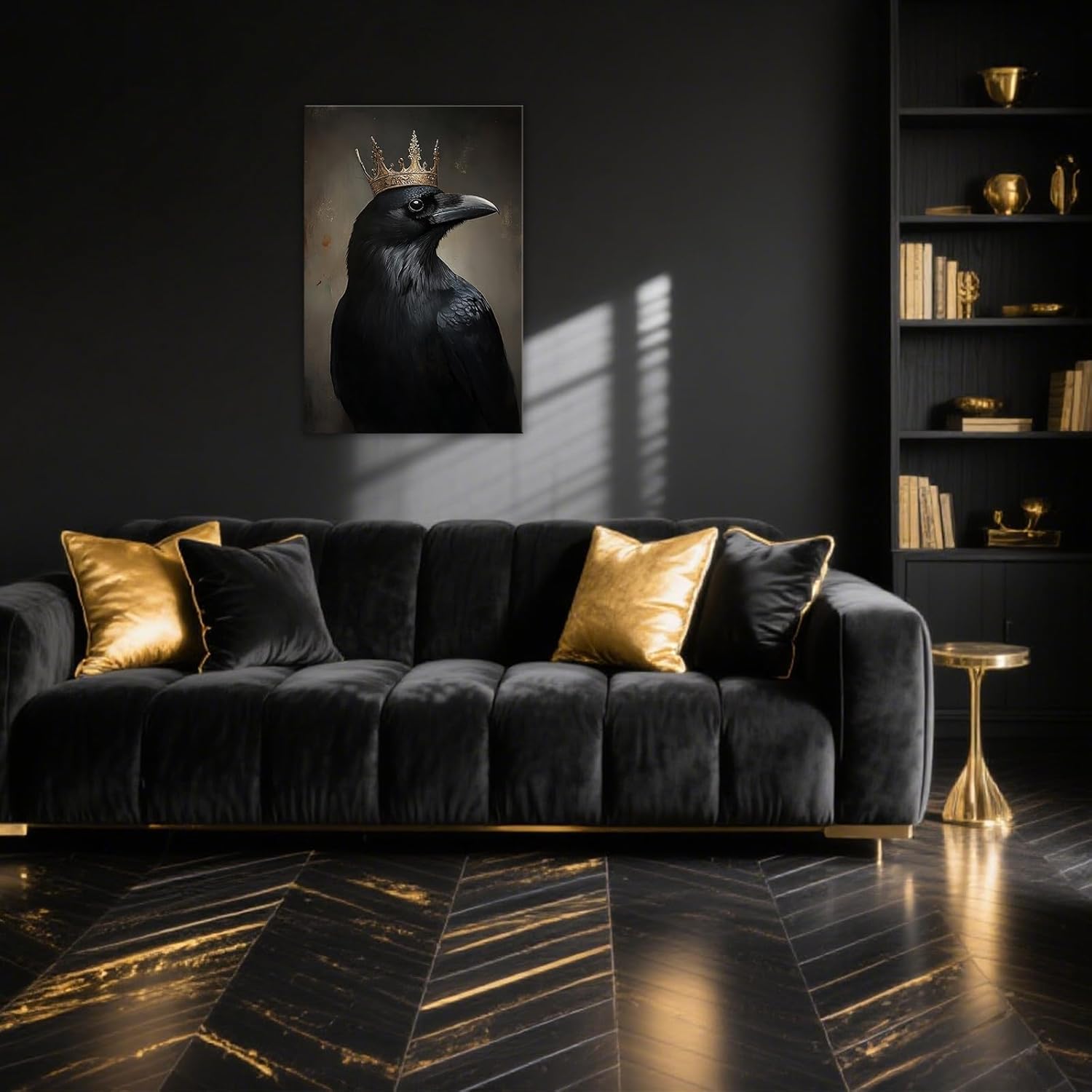 OAAPITI Raven King Wall Art Mysterious Black Bird Painting Dark Gothic Animal Canvas Print for Living Room Bedroom Home Office Inspirational Decor(Artwork-8,16"x24")